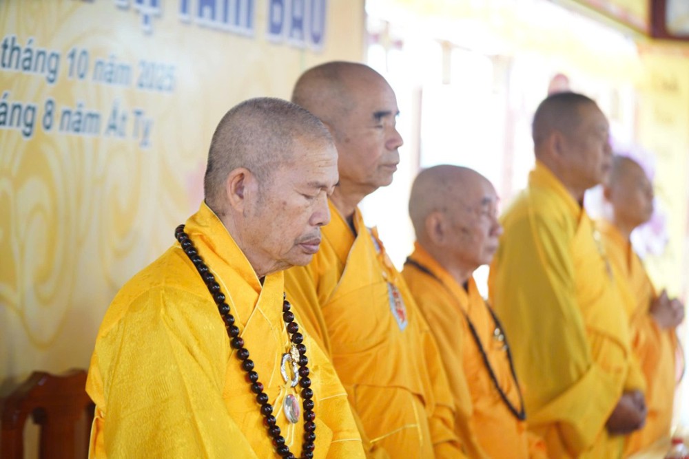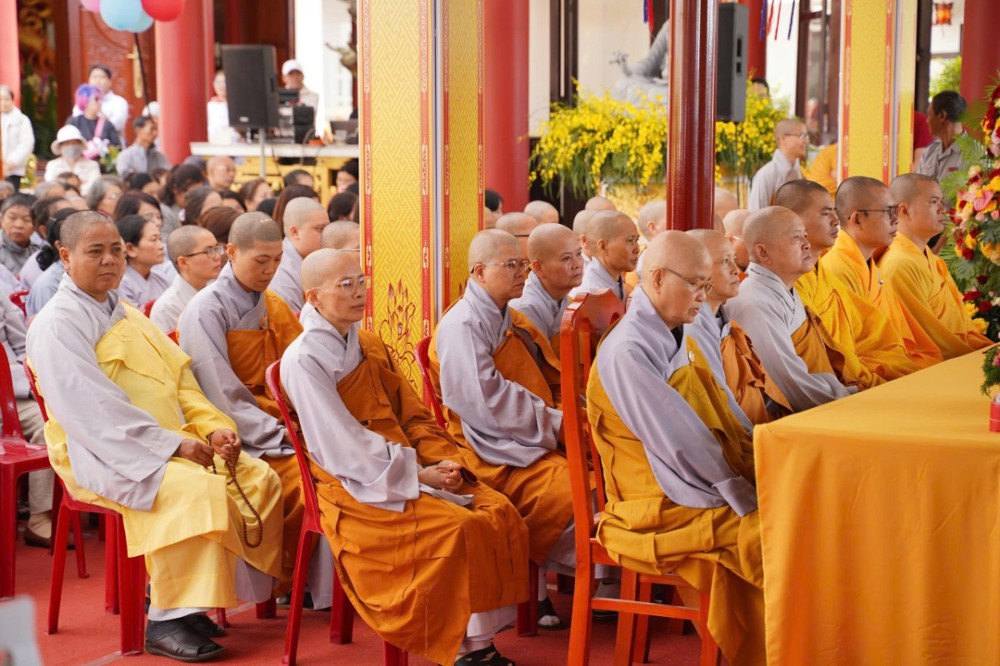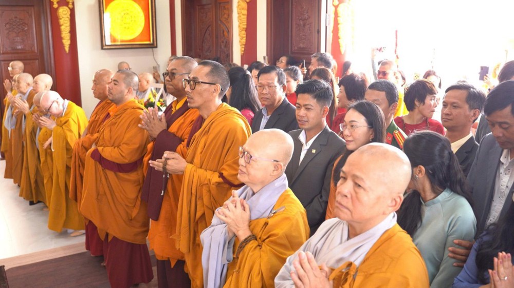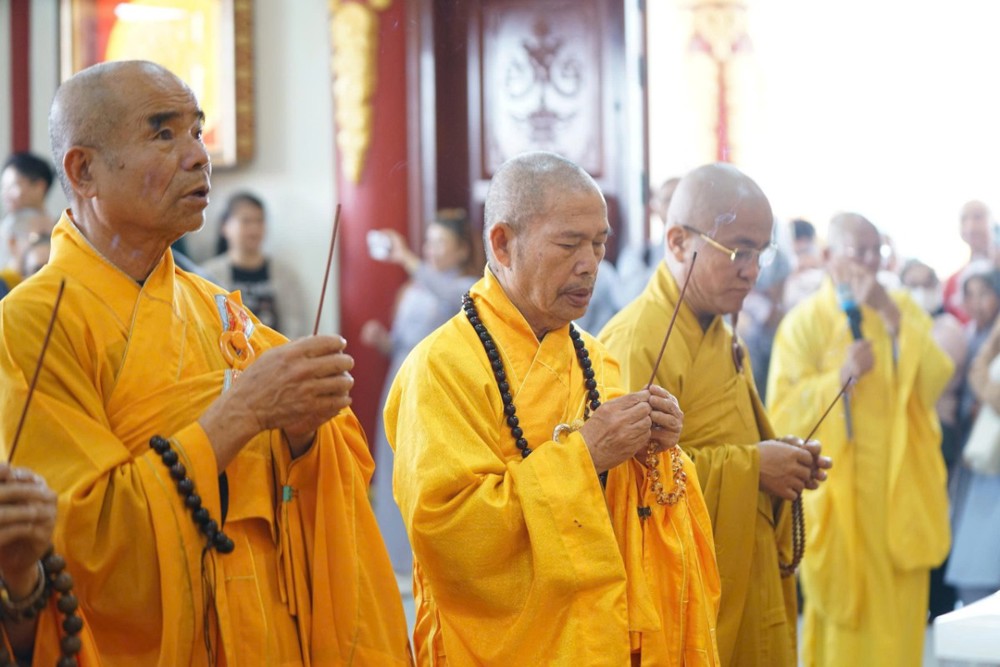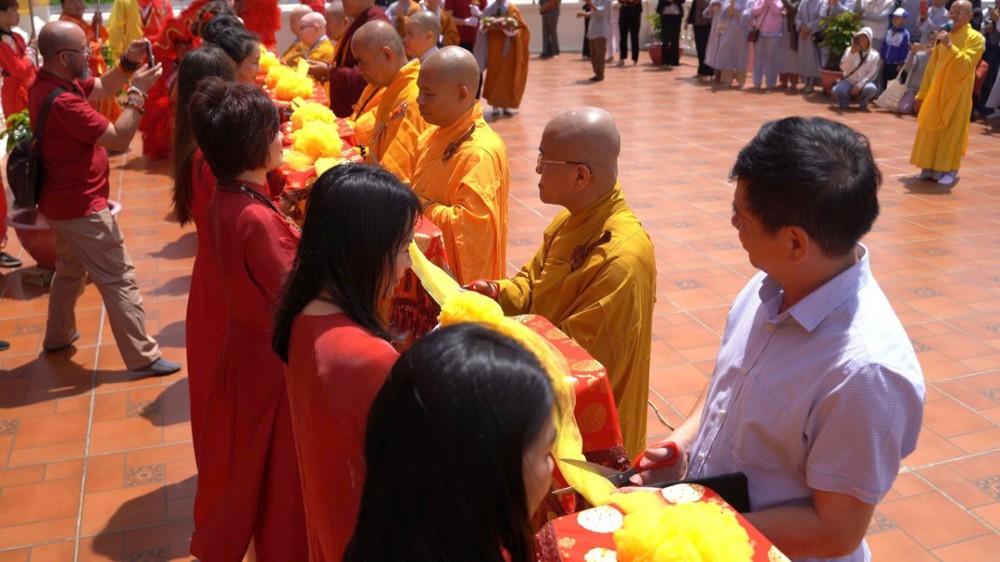 Cuối buổi lễ, chư Tôn đức chứng minh cùng Ban Tổ chức trang nghiêm cử hành nghi thức cắt băng khánh thành trong tiếng nhạc rộn ràng và niềm hoan hỷ của toàn thể đại chúng. Tiếp nối là nghi lễ dâng hương được long trọng thực hiện, khói hương trầm quyện tỏa, tạo nên bầu không khí thiêng liêng, thanh tịnh và trang nghiêm.