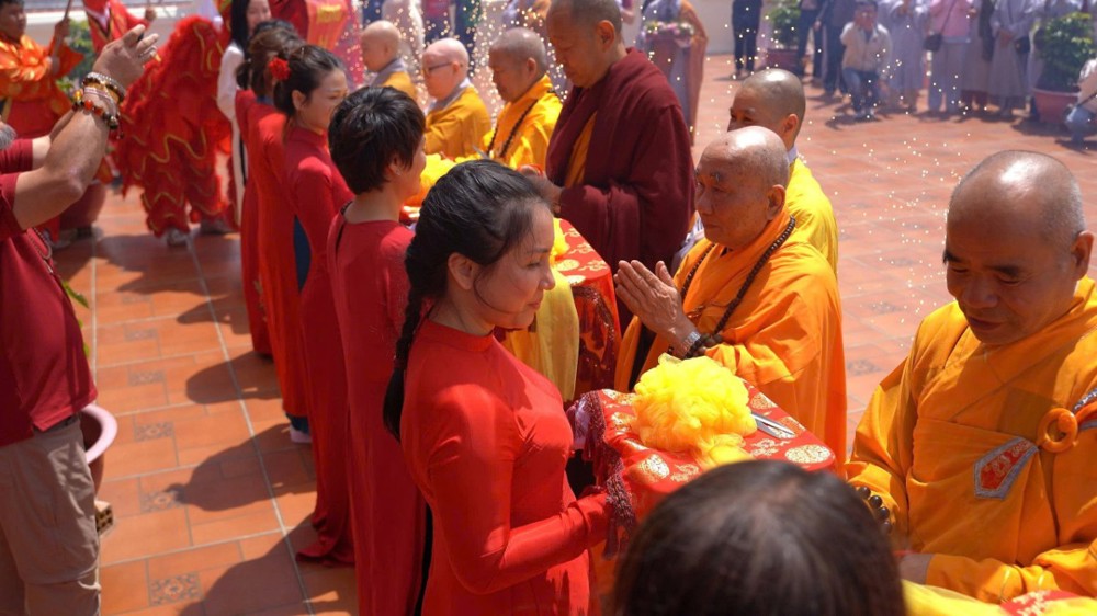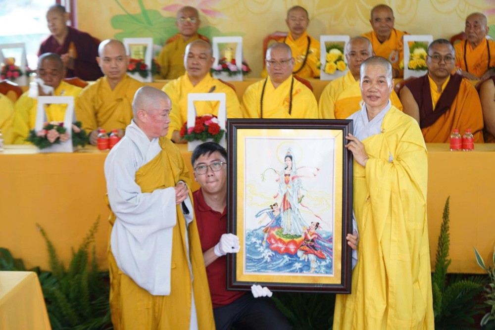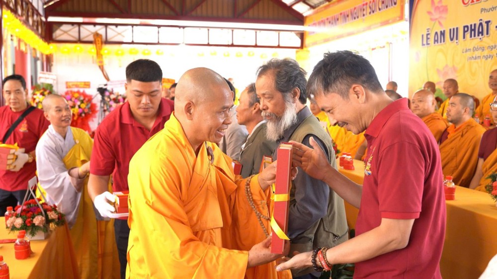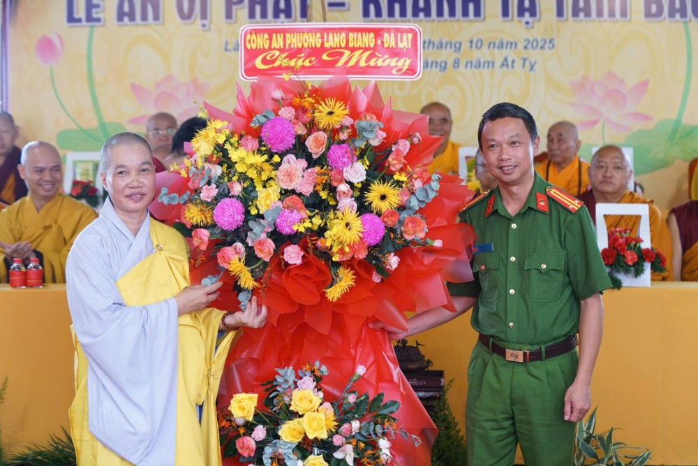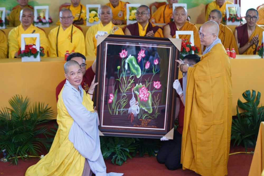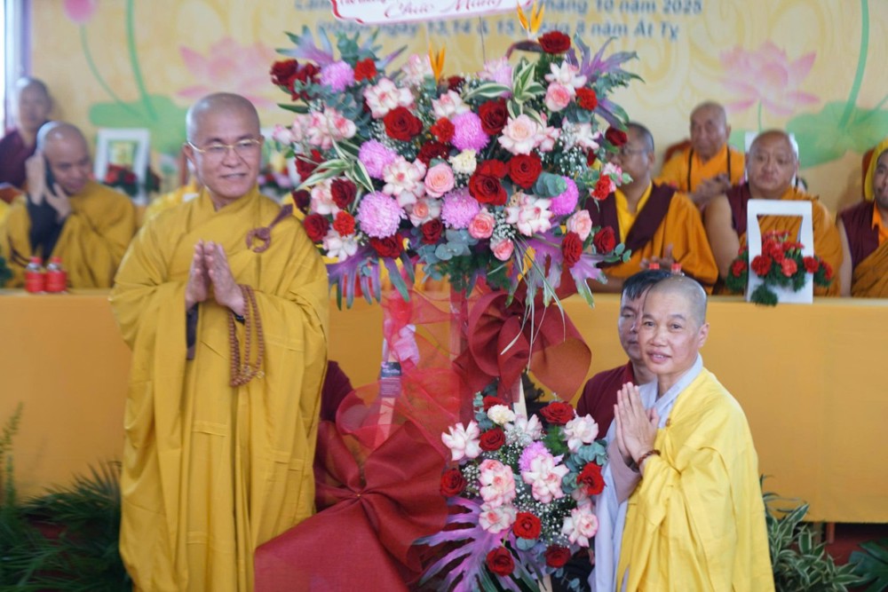 Đồng thời, Ban Tổ chức cũng đón nhận những lẵng hoa tươi thắm và phần quà quý do chư Tôn đức chứng minh cùng quý đại biểu gửi tặng, thể hiện sự tri ân và chúc mừng công trình được thành tựu viên mãn.