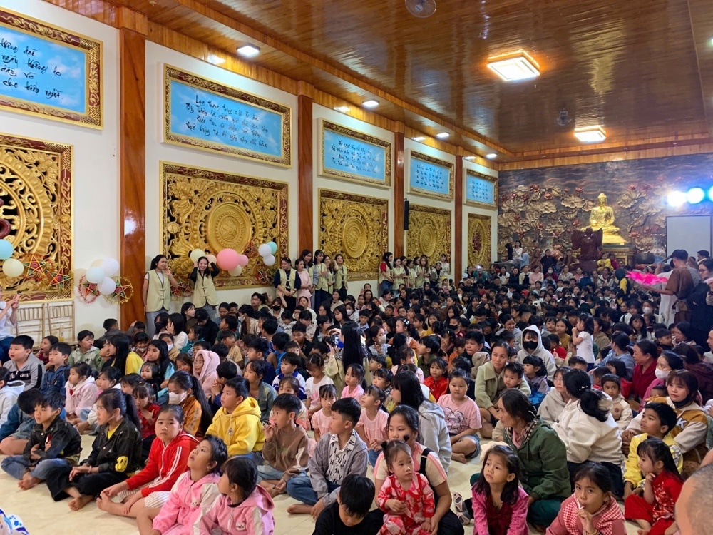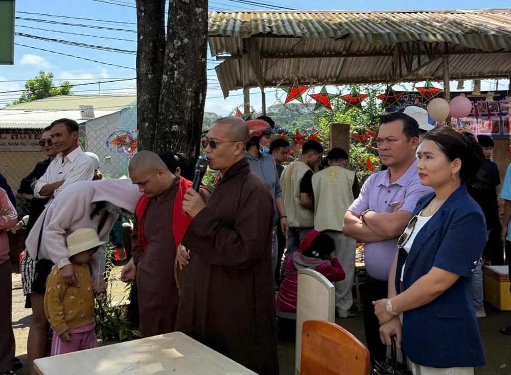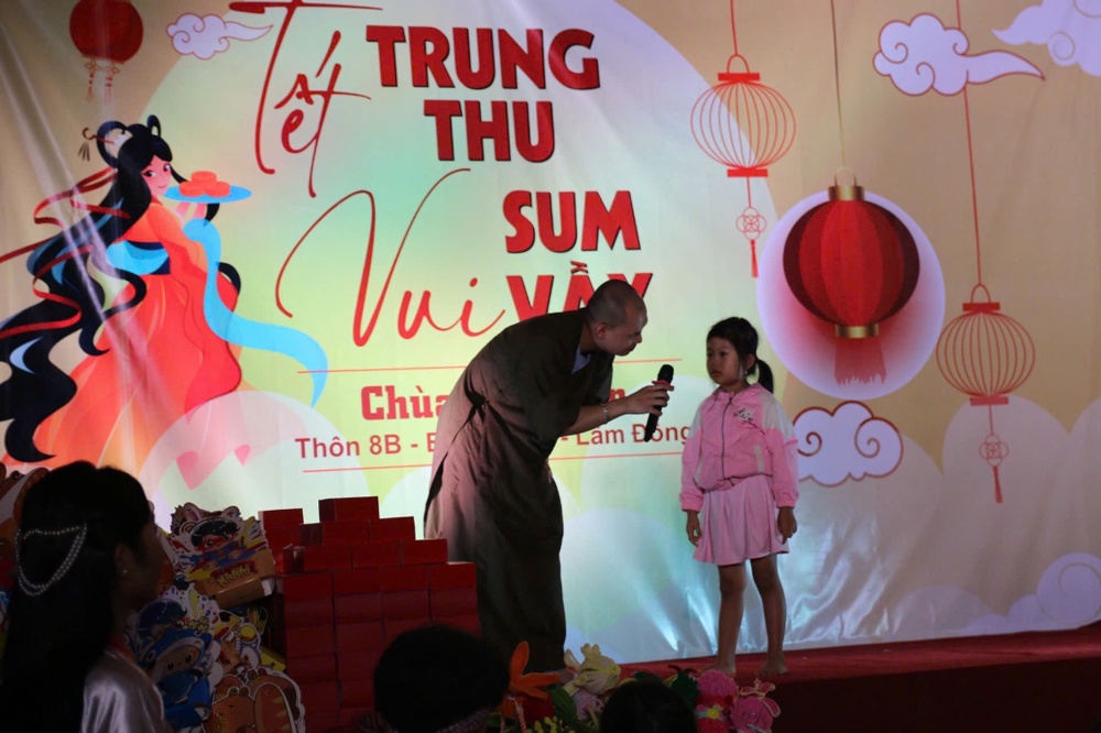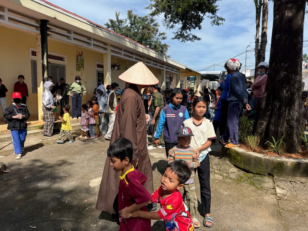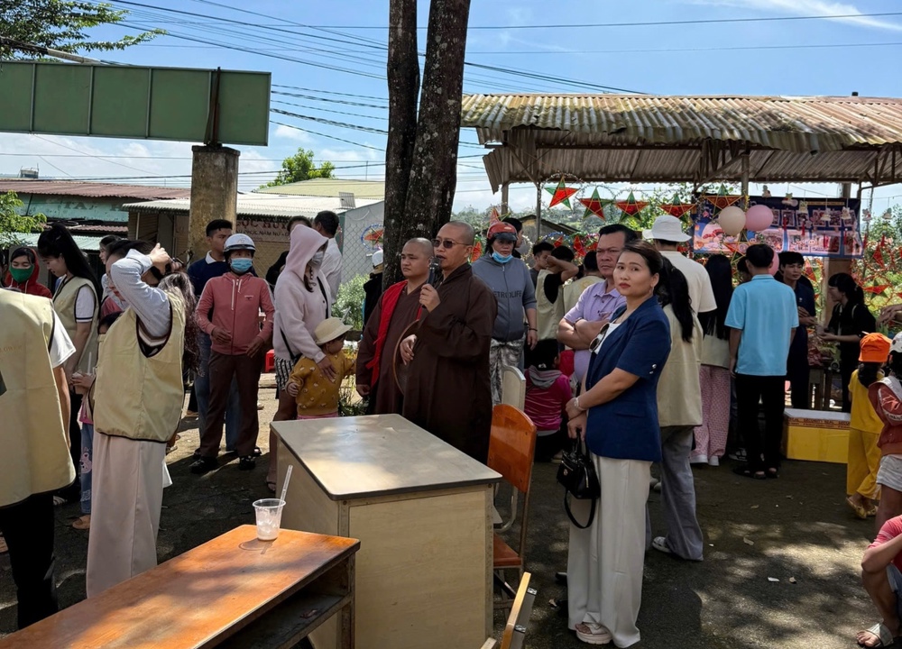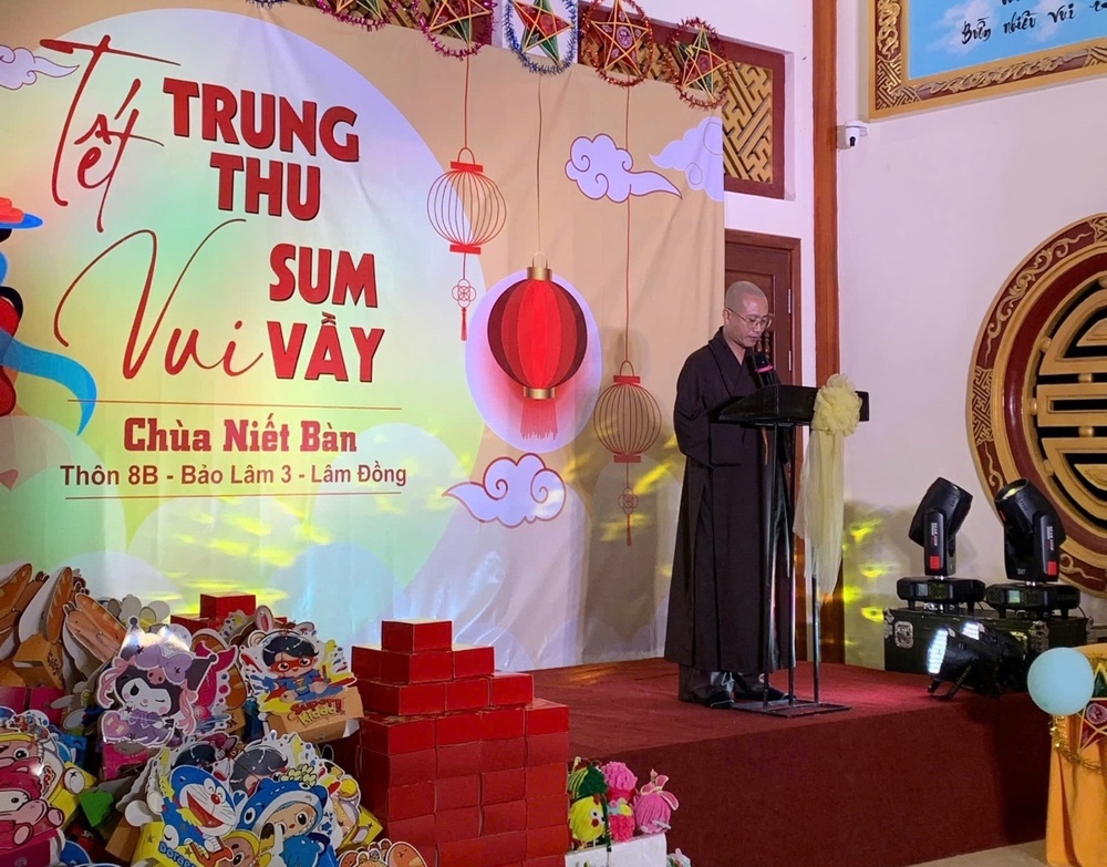 Đại Đức Thích Đồng Sỹ, Trụ trì chùa Niết Bàn phát biểu và gửi những lời chúc tốt đẹp nhất tới các Em nhỏ, những lời chia sẻ động viên của Thầy trụ trì thấm đượm tình yêu thương như tiếp thêm sức mạnh tinh thần, gửi gắm hy vọng về một cuộc sống an lạc, hạnh phúc đến với các em nhỏ. Hoạt động này đã làm sáng tỏ ý nghĩa sâu sắc của mùa Trung thu: đó không chỉ là dịp đoàn viên gia đình mà còn là khoảnh khắc để sẻ chia và lan tỏa ánh sáng từ bi, để mọi người, đặc biệt là các em nhỏ đồng bào dân tộc đều cảm nhận được tình người ấm áp và niềm vui trọn vẹn của ngày hội Trăng Rằm.