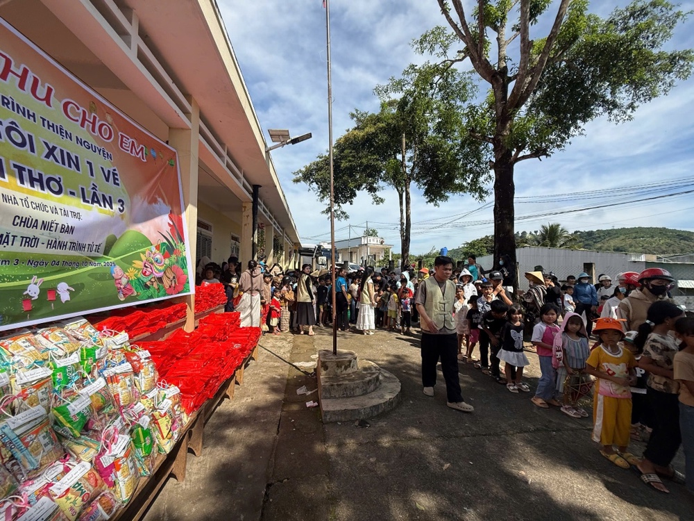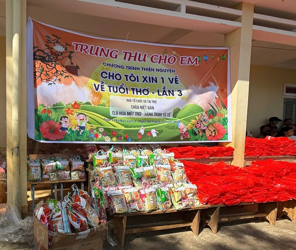 PSO:Sáng ngày 4 tháng 10 năm 2025 (tức ngày 13 tháng 8ÂL năm Ất Tỵ), tại Lâm Đồng không khí Trung thu đã trở nên ấm áp và nghĩa tình hơn bao giờ hết, khi Chùa Niết Bàn trở thành điểm tựa của lòng nhân ái và sự sẻ chia. Dưới sự dẫn dắt của Đại Đức Thích Đồng Sỹ, Phó trưởng Phân ban Dân tộc Trung Ương, Trụ trì Chùa Niết Bàn, cùng sự đồng hành của Đại Đức Thích Thường Bảo,Trưởng Câu lạc bộ Hoa Mặt Trời, buổi lễ thiện nguyện trao tặng quà Trung Thu tới đồng bào dân tộc được diễn ra trong không gian đầy xúc động và thắm tình đạo vị.