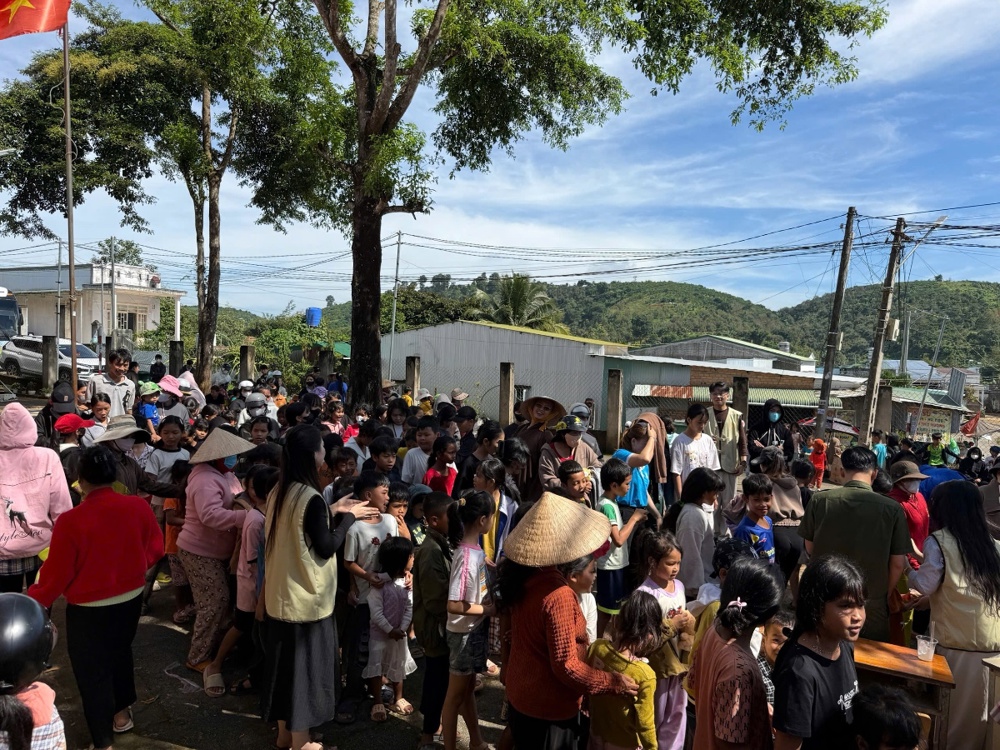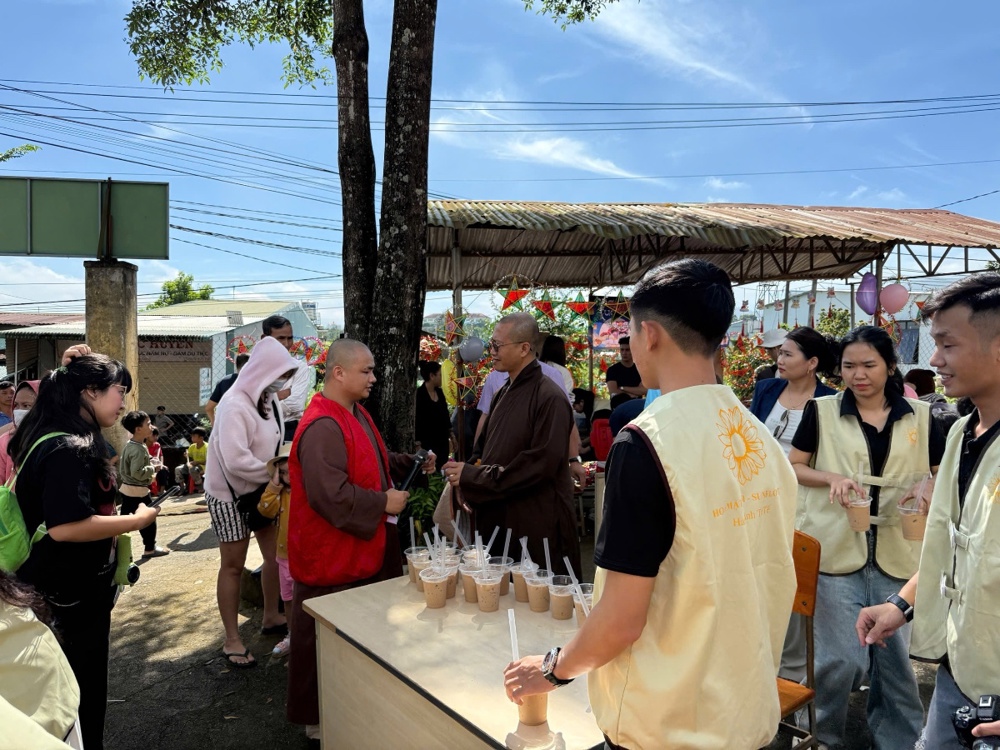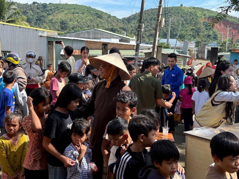 Tại buổi lễ Ban tổ chức đã trao tặng 500 phần quà Trung thu thiết thực tới các đồng bào dân tộc tại thôn 1 và thôn 2, xã Bảo Lâm 3, tỉnh Lâm Đồng. Đây không chỉ là những món quà vật chất mà còn là sự động viên, là cầu nối yêu thương giữa đạo và đời, khẳng định tinh thần "tương thân tương ái" cao đẹp của chư Tôn thiền đức đối với bà con và nhân dân địa phương đồng bào dân tộc.