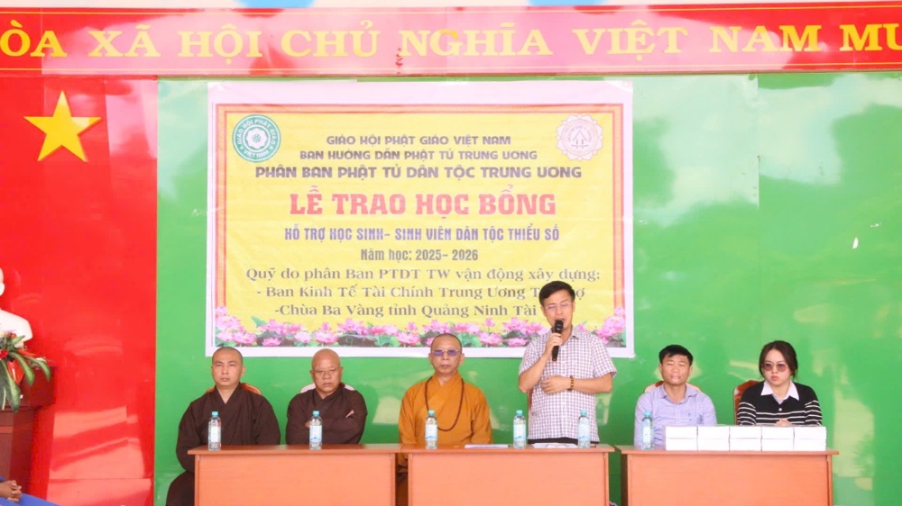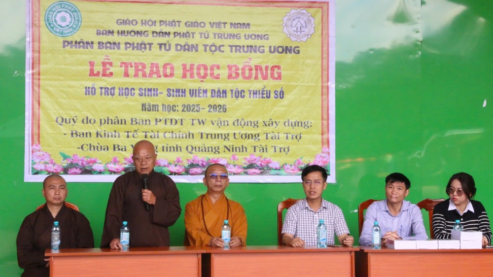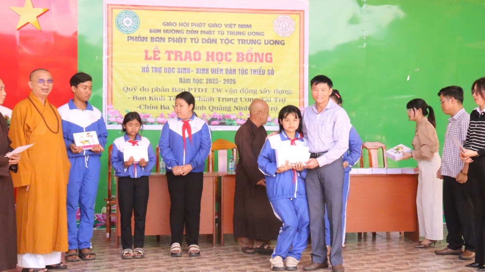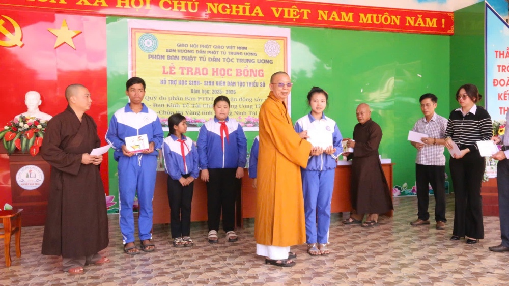 PSO; Sáng ngày 08 tháng 10 năm 2025 (nhằm ngày 17 tháng 8 năm Ất Tỵ), Phân ban Phật tử Dân tộc (PTDT) Trung ương đã tổ chức lễ trao học bổng và quà tặng tại Trường Tiểu học và Trung học Cơ sở (TH-THCS) Nguyễn Văn Trỗi, Thôn 2, xã Lộc Lâm, huyện Bảo Lâm, tỉnh Lâm Đồng.