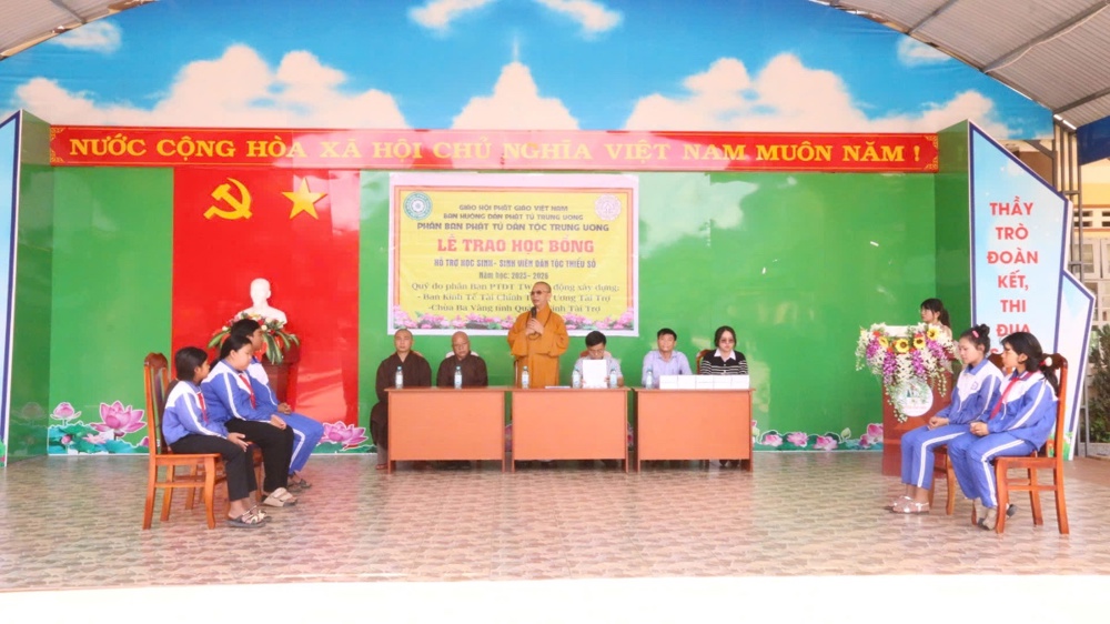 Chương trình diễn ra với sự hiện diện của chư Tôn đức Tăng Ni, đại diện Phân ban PTDT Trung ương và Ban Giám hiệu Nhà trường: