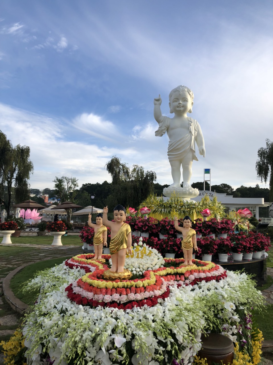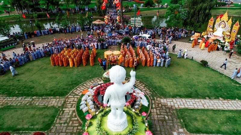 Sáng ngày 8/4/Kỷ Hợi, tại nhà hàng Thủy Tạ bên hồ Xuân Hương thơ mộng của phố ngàn hoa đã diễn ra lễ tắm Phật trang nghiêm và thanh tịnh. Dưới sự chứng minh của chư Tôn đức Tăng Già cùng với sự tham gia đông đảo của quý Phật tử, các em tình nguyện viên, đặc biệt các du khách tham quan cũng tham gia lễ Phật. Năm nay tại, tại khuôn viên nhà hàng thủy tạ, Ban Trị sự thành phố Đà Lạt đã thiết trí ba lễ đài chính: Phật Đản sanh, Phật Thành đạo và Phật nhập Niết Bàn.