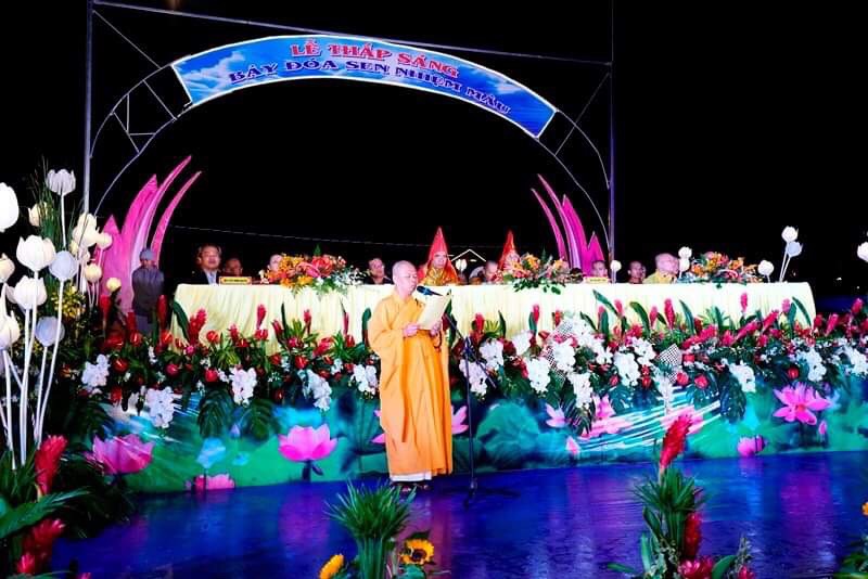 ĐĐ. Thích Vạn Trí đã tuyên đọc diễn văn khai mạc buổi lễ, với nhiều nội dung mà con người đang quan tâm như: mỗi con người chúng ta cùng chung ta nuôi dưỡng và phát triển lòng từ bi, trí tuệ của mình để có những suy nghĩ, lời nói và hành động hiền thiện, thiết thực, lợi ích cho tự thân, gia đình, làng xóm để dâng lên cúng dường Đức Phật, góp phần xây dựng xã hội hài hòa, thân thiện và văn minh.