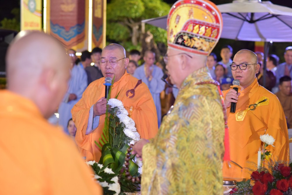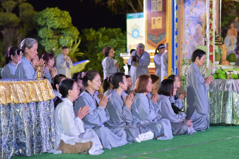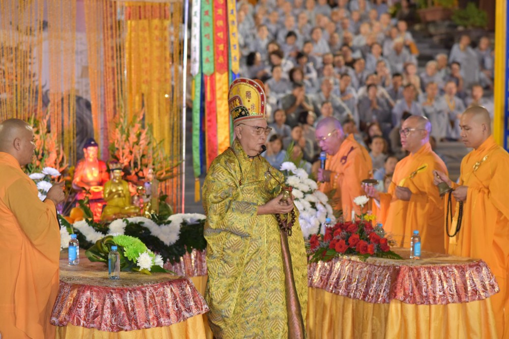 Chư Tôn đức Ban kinh sư đã tuần tự thực hiện các nghi thức lễ Phật, xưng tán Tam bảo, khai thị hương linh, thuyết U Minh giới. Hòa thượng hướng dẫn chư hương linh sám hối ba nghiệp, truyền tam tụ tịnh giới để hương linh phát khởi tâm lành, quay về nương tựa giáo pháp chân chánh của chư Phật. Sau phần thuyết U Minh giới, Hòa thượng gia trì cùng chư Tôn đức Ban kinh sư, đã thực hiện nghi thức chúc thực phổ thí âm linh và thập nhị loại cô hồn.