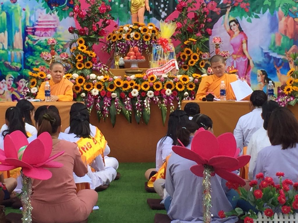 Buổi lễ diễn ra trang nghiêm trong khuôn viên tịnh xá hai ngày 14-15/4/Kỷ Hợi, với nhiều chương trình thiết thực ý nghĩa, sau khi đón tiếp chính quyền đến chúc mừng, Sc Ngọc Liên - Trụ trì Tịnh xá Viên Quang hướng dẫn quý Phật tử trì tụng kinh Khánh đản, phóng sanh, thắp nến cầu nguyện, mở kỳ thi giáo lý, văn nghệ chào mừng, thực hiện nghi thức tắm Phật....một chuỗi sự kiện diễn ra trong ngày Phật đản, ngày vui của Phật giáo tòa cầu, ngày hòa bình và hạnh phúc, với tâm nguyện tạo nhiều công đức trong mùa Phật đản để dâng lên cúng dường đức Từ phụ Bổn Sư Thích Ca Mâu Ni Phật.