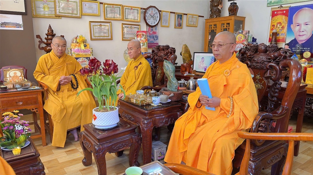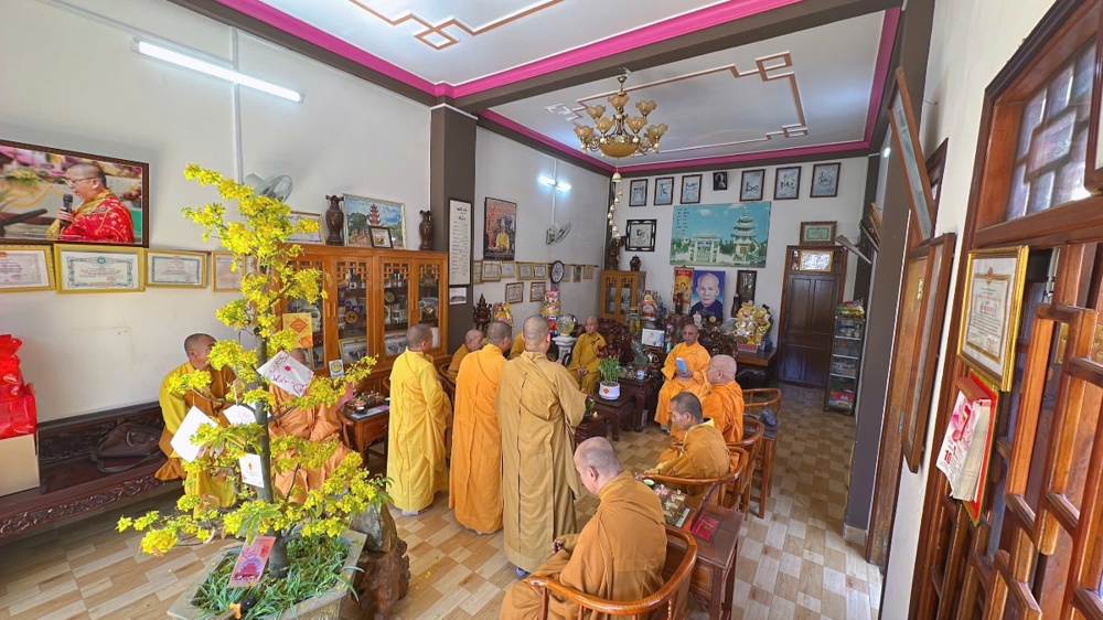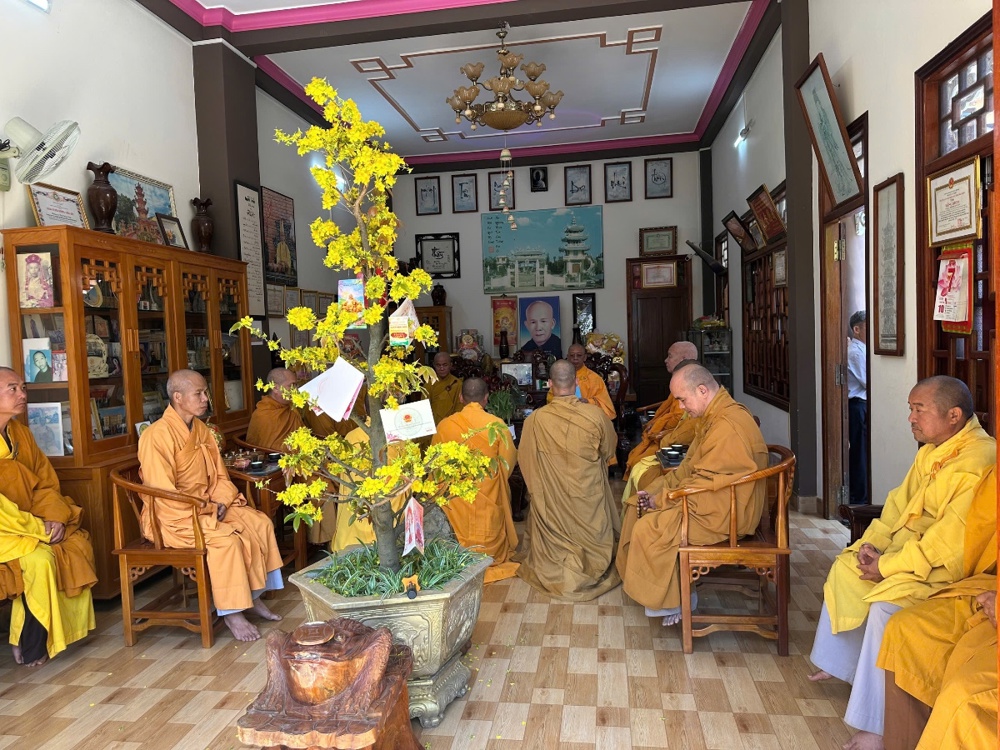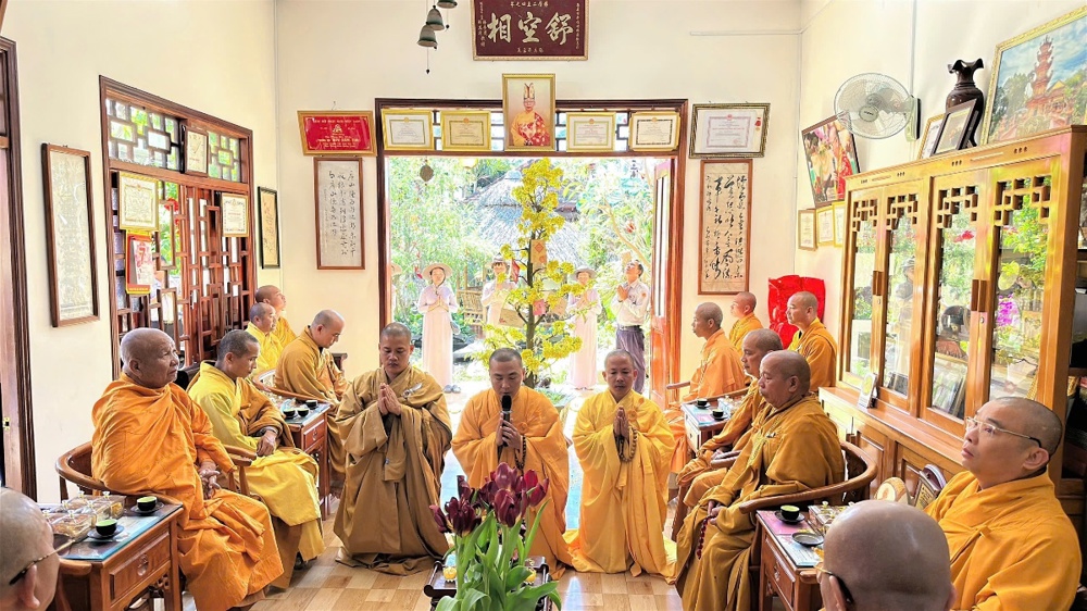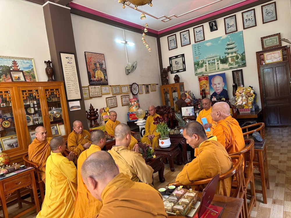 Sáng 14/2 ( nhằm ngày 27 tháng Chạp) Trưởng lão Hòa thượng Thích Thiện Nhơn, Trưởng lão Hòa thượng Thích Thiện Pháp cùng chư tôn giáo phẩm Hội đồng Chứng minh và Hội đồng Trị sự đã về tại Tổ đình Thiên Thai, tảo tháp chư liệt vị Tổ sư và dâng hương tưởng niệm húy kỵ Trưởng lão Hòa thượng Thích Minh Nguyệt – Phó Pháp chủ Hội đồng Chứng minh.
