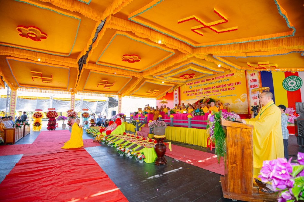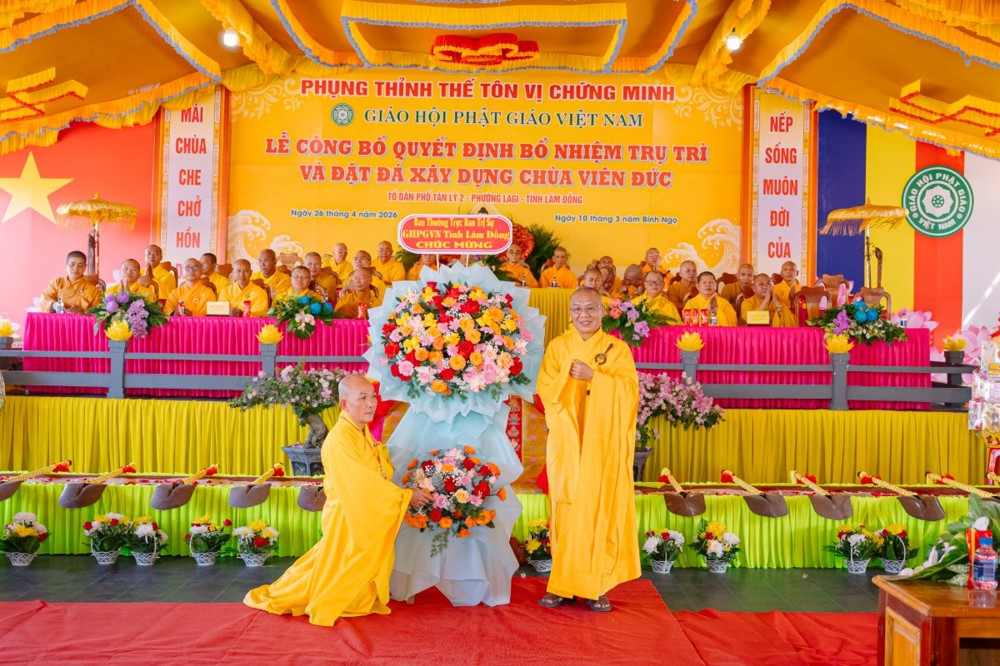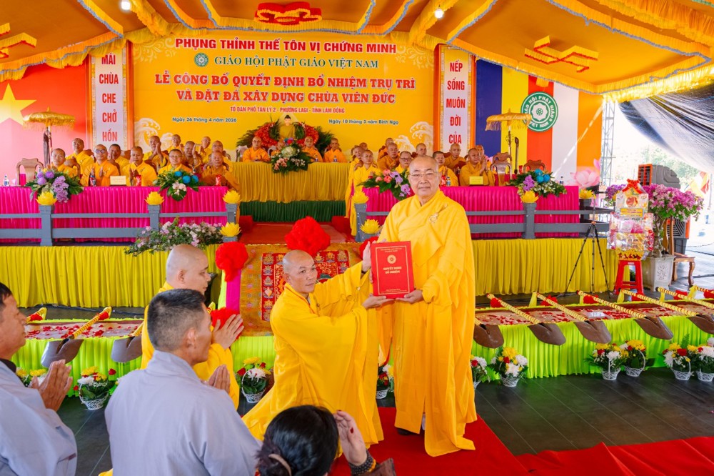 Tại buổi lễ, Đại đức Thích Quảng Pháp – Phó Thư ký kiêm Chánh Văn phòng Ban Trị sự GHPGVN tỉnh đã công bố Quyết định thành lập chùa Viên Đức và bổ nhiệm Đại đức Thích Nhuận Hạnh đảm nhiệm trụ trì.