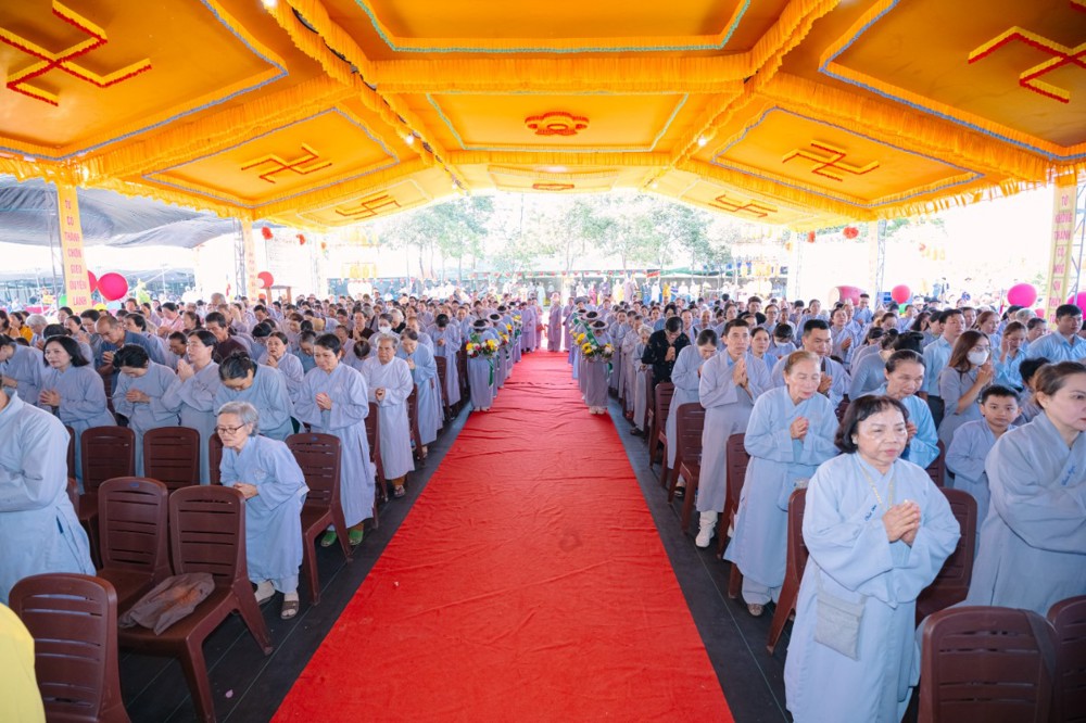 Mở đầu buổi lễ, toàn thể đạo tràng trang nghiêm cử hành nghi thức niệm Phật cầu gia hộ. Trong không khí thiêng liêng của ngày Giỗ Tổ Hùng Vương (10/3 âm lịch), hội chúng đã dành phút mặc niệm tưởng nhớ công đức Quốc Tổ, chư vị thánh tử đạo và anh linh các anh hùng liệt sĩ. Tiếp đó là diễn văn khai mạc và nghi thức dâng hoa cúng dường của đoàn thanh thiếu niên Phật tử.