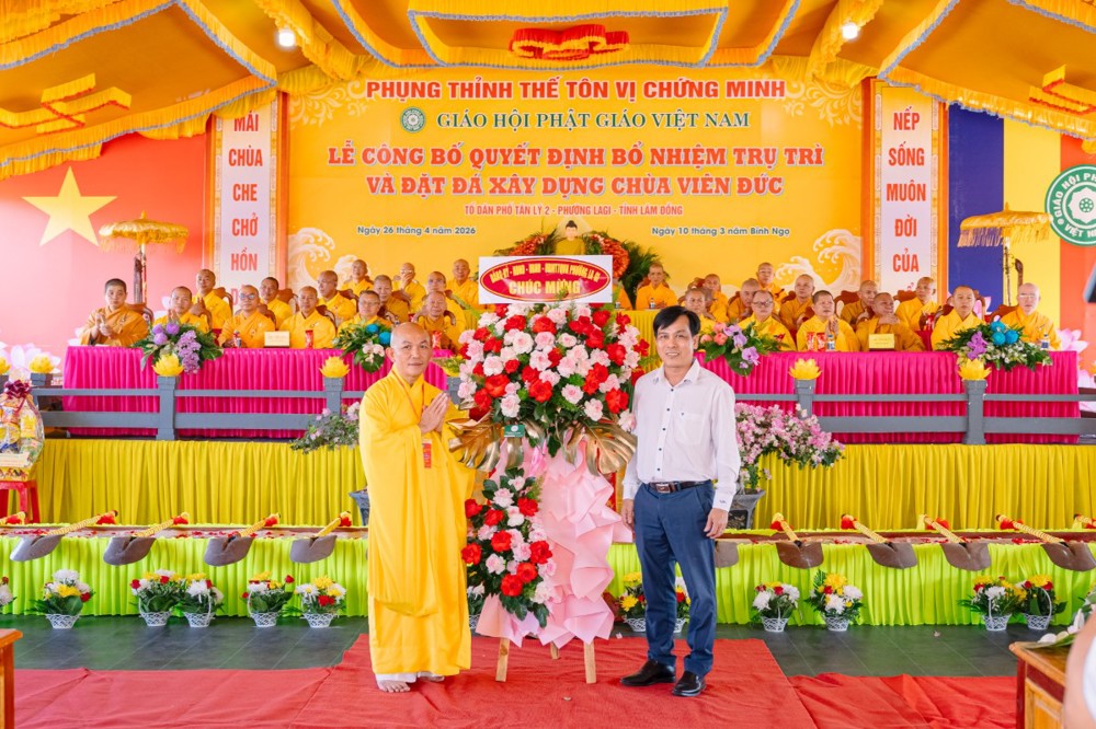 Dịp này, Đại đức cũng đón nhận nhiều lẵng hoa và phần quà chúc mừng từ chư Tôn đức giáo phẩm, đại diện chính quyền cùng các ban, ngành, đoàn thể, thể hiện sự quan tâm và kỳ vọng vào sự phát triển của ngôi già lam trên mảnh đất này.