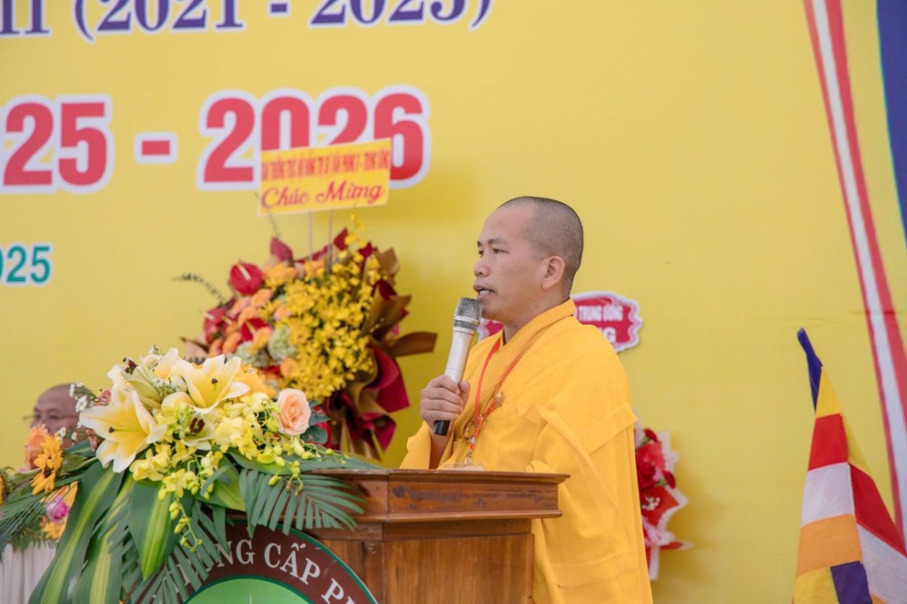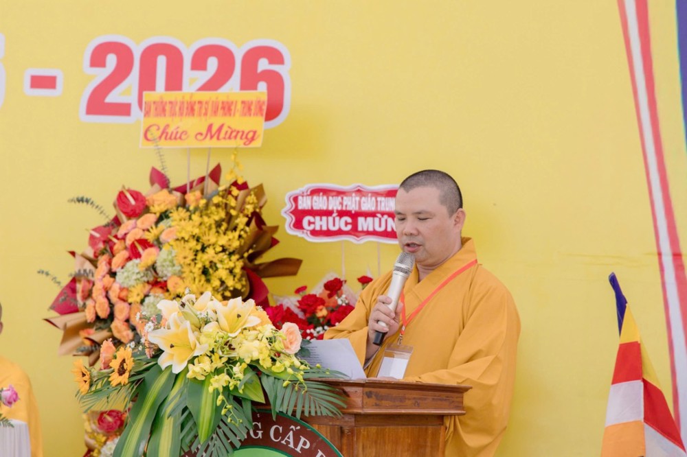 Đại đức Thích Nguyên Tấn – Phó Hiệu trưởng Thường trực, thay mặt Ban Tổ chức dâng lời cảm tạ, khép lại buổi lễ trong không khí trang nghiêm, hoan hỷ và thắm tình đạo vị.