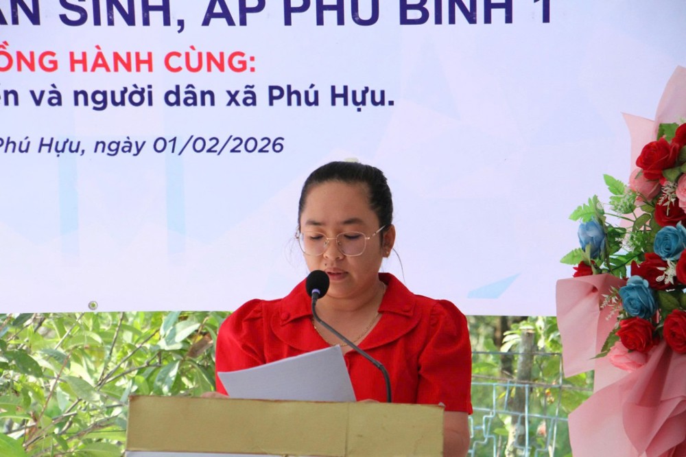 Đại diện bà con nhân dân ấp Phú Bình 1, bà Bùi Thị Mỹ xúc động bày tỏ niềm vui và lòng biết ơn sâu sắc đến các cấp lãnh đạo, quý nhà tài trợ, mạnh thường quân và đặc biệt là Sư cô Thích Nữ Tâm Thường – người đã kết nối, vận động nguồn lực để cây cầu và con đường được hình thành. Bà cũng thay mặt người dân hứa sẽ gìn giữ, bảo vệ công trình để sử dụng lâu dài, hiệu quả.