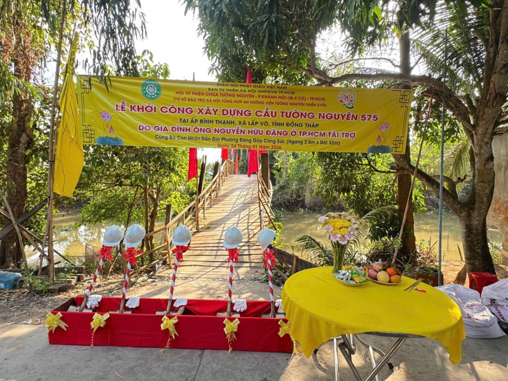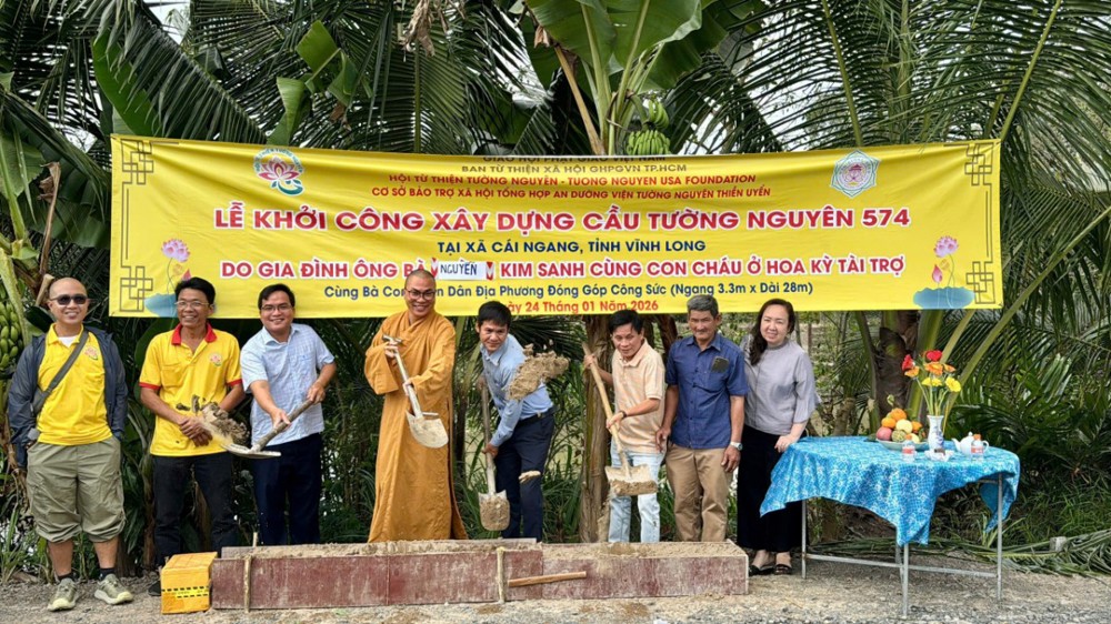 PSO - Ngày 24/01/2026 (nhằm ngày 17/11 năm Ất Tỵ), Hội Từ thiện chùa Tường Nguyên (TP. Hồ Chí Minh) đã tổ chức Lễ khởi công xây dựng cầu Tường Nguyên 574 và 575, mang theo niềm vui và hy vọng đến với bà con nhân dân tại các địa phương còn nhiều khó khăn về giao thông.