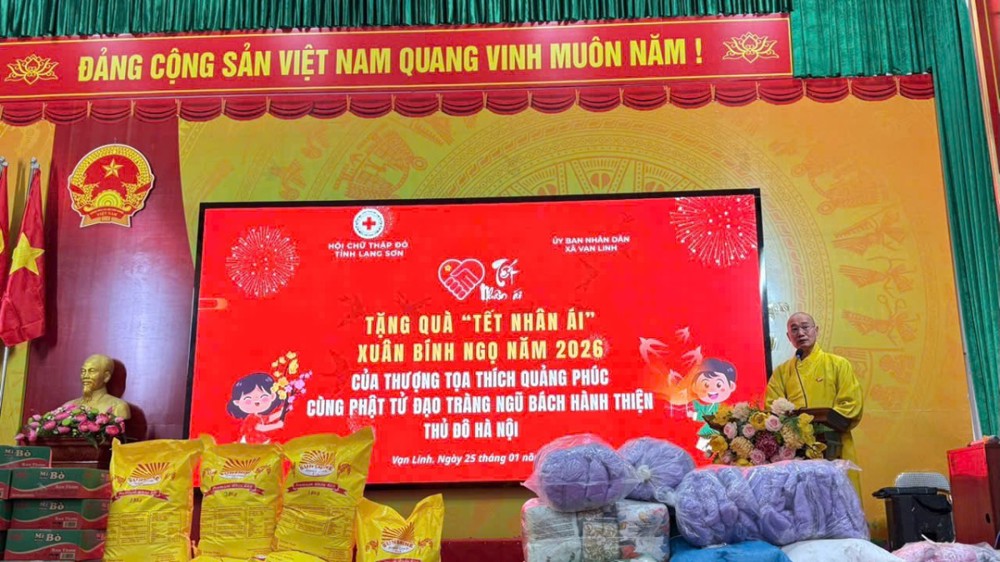 PSO - Ngày 26/01/2026, Thượng tọa Thích Quảng Phúc – Ủy viên Ban Từ thiện Xã hội Trung ương, Phân ban Giáo dục – đã cùng quý Phật tử Đạo tràng Ngũ Bách Hành Thiện (TP. Hà Nội) vượt đường xa về thăm và trao quà cho bà con nhân dân xã Vạn Linh, tỉnh Lạng Sơn, một địa phương vùng biên còn nhiều khó khăn.