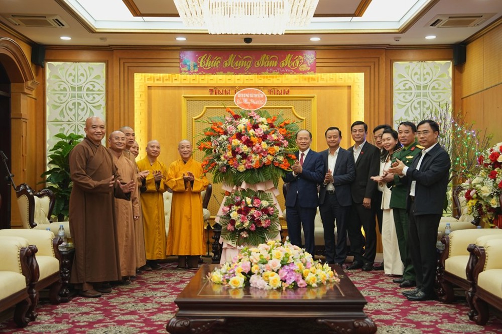 Sáng ngày 6/2, nhằm ngày 19/12 năm Ất Tỵ, trong không khí hoan hỷ đón Xuân Bính Ngọ đang cận kề, chư Tôn đức lãnh đạo BTS GHPGVN tỉnh Hà Tĩnh do Hòa thượng Thích Bảo Nghiêm – Phó Chủ tịch HĐTS, Trưởng ban Hoằng pháp TƯGH, Trưởng BTS Phật giáo tỉnh làm trưởng đoàn đã đến thăm, chúc Tết và gửi lời chúc mừng năm mới tới các cơ quan, ban, ngành trên địa bàn tỉnh, thể hiện tinh thần đồng hành, gắn bó của Phật giáo tỉnh nhà cùng chính quyền trong sự nghiệp xây dựng và phát triển quê hương.