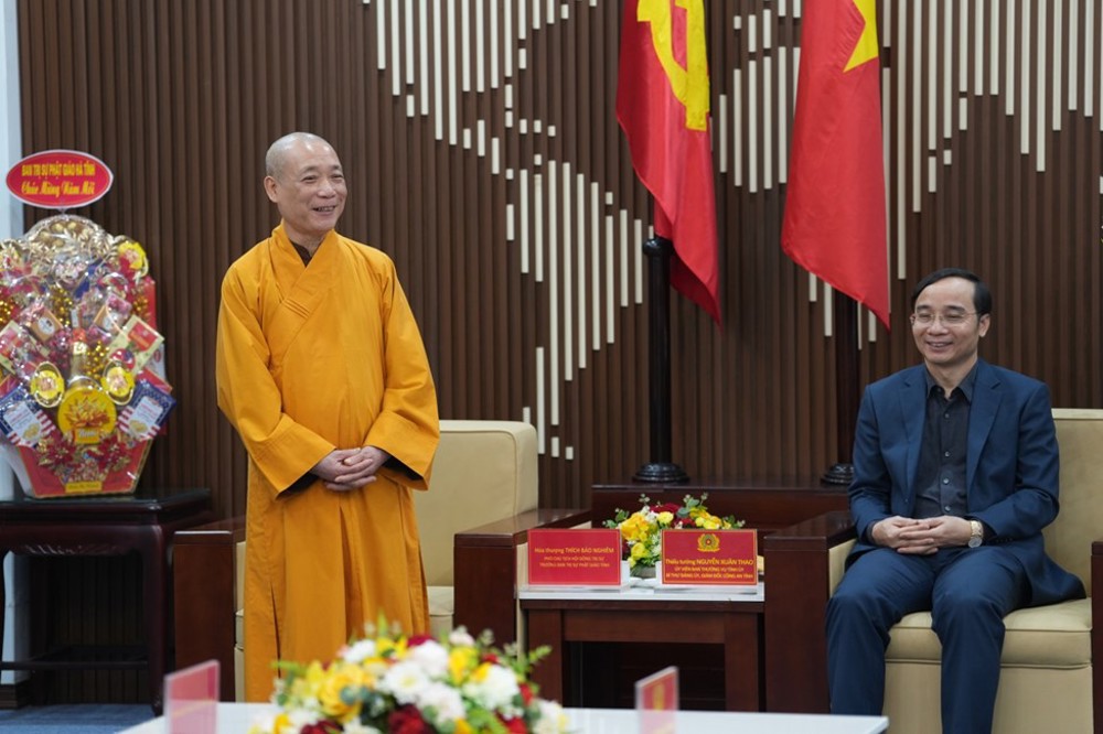 Thiếu tướng Nguyễn Xuân Thao chân thành cảm ơn tình cảm và sự quan tâm của Ban Trị sự GHPGVN tỉnh Hà Tĩnh; ghi nhận sự đồng hành, đóng góp tích cực của Tăng Ni, Phật tử trong công tác giữ gìn ổn định xã hội, xây dựng nếp sống văn hóa lành mạnh. Đồng thời, ông bày tỏ mong muốn Phật giáo tỉnh tiếp tục phối hợp chặt chẽ với lực lượng Công an trong thời gian tới, cùng chung tay vì mục tiêu an dân – ổn định – phát triển.