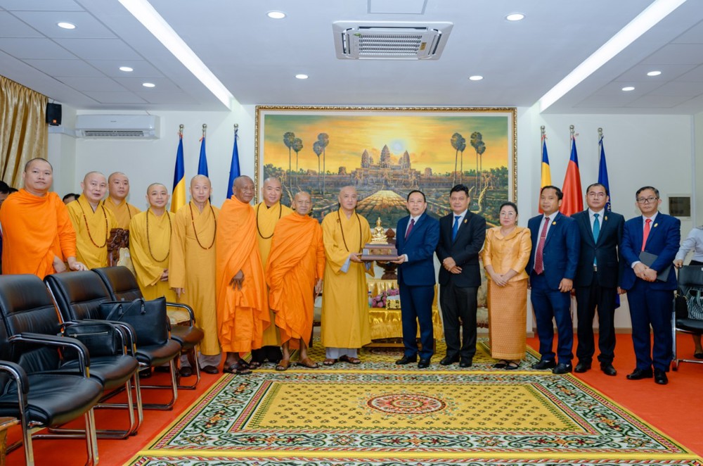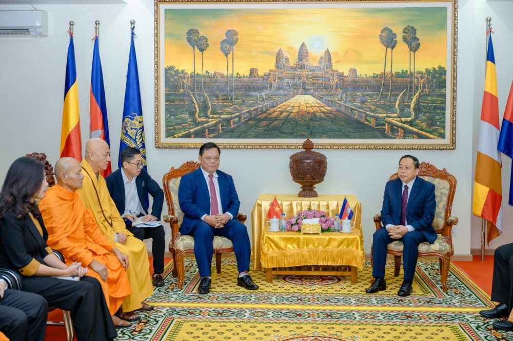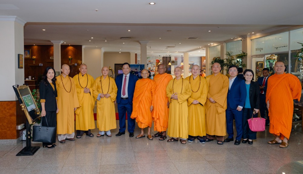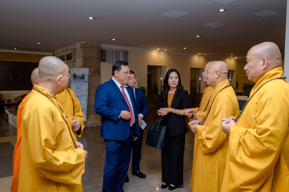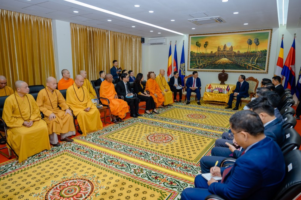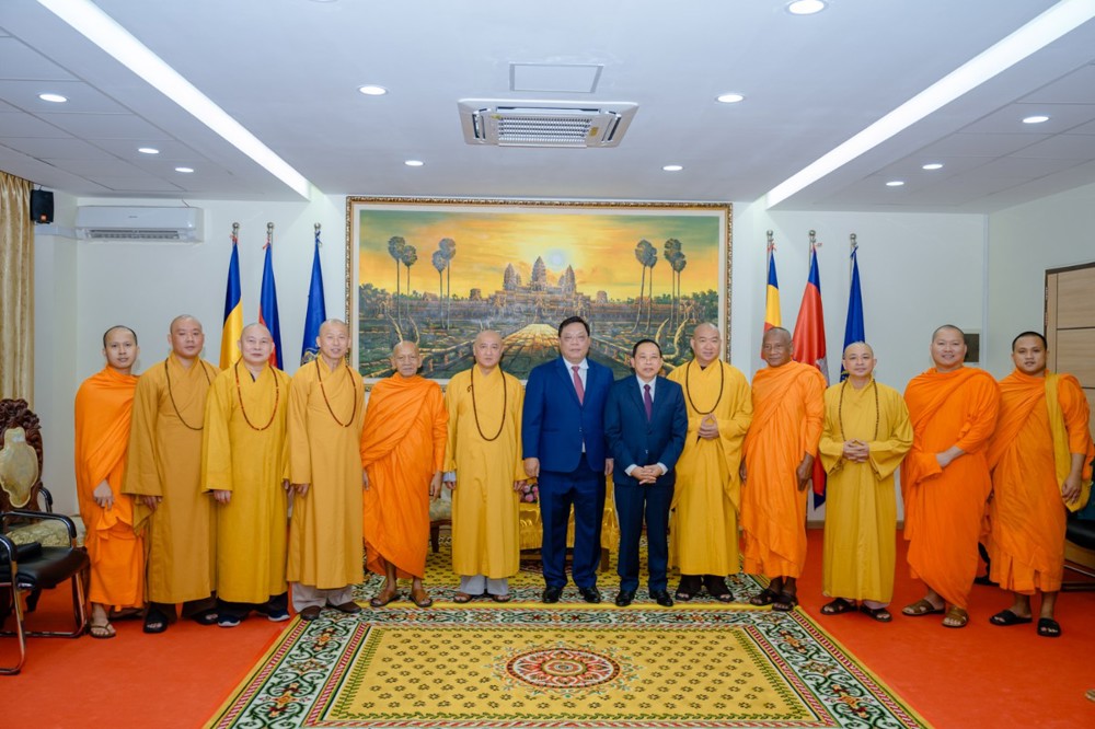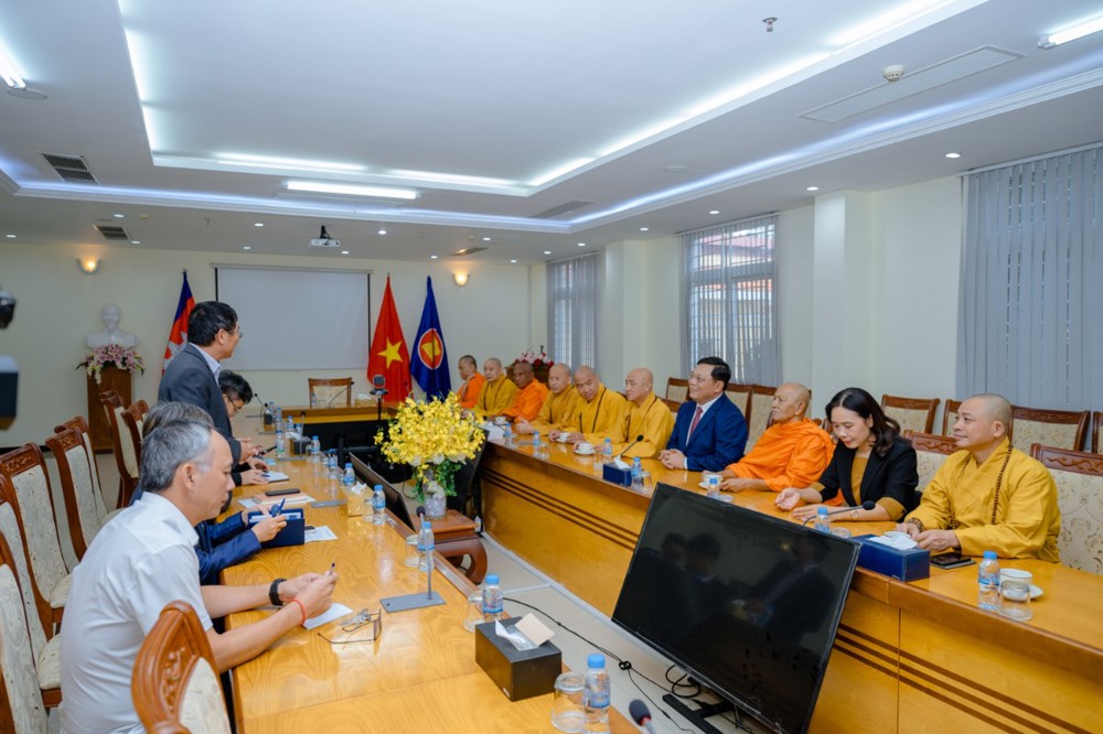 Dịp này, đoàn lãnh đạo Giáo hội Phật giáo Việt Nam và Bộ Dân tộc – Tôn giáo Việt Nam cũng đã đến thăm Đại sứ quán Việt Nam tại Vương quốc Campuchia, thảo luận một số công việc liên quan đến Hội nghị Thượng đỉnh Phật giáo sẽ chính thức diễn ra vào sáng ngày 28-10-2025.