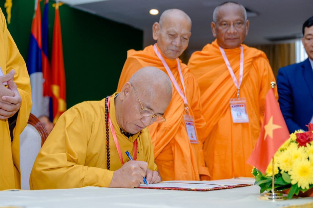 Đại diện Giáo hội Phật giáo Việt Nam, Hòa thượng Thích Huệ Thông, Phó Chủ tịch Hội đồng Trị sự, Trưởng ban Pháp chế Trung ương, đã thay mặt Trung ương GHPGVN ký vào Tuyên bố chung, dưới sự chứng kiến của lãnh đạo Bộ Lễ nghi và Tôn giáo Campuchia, Bộ Dân tộc và Tôn giáo Việt Nam và Ủy ban Trung ương Mặt trận Lào Xây dựng Đất nước.