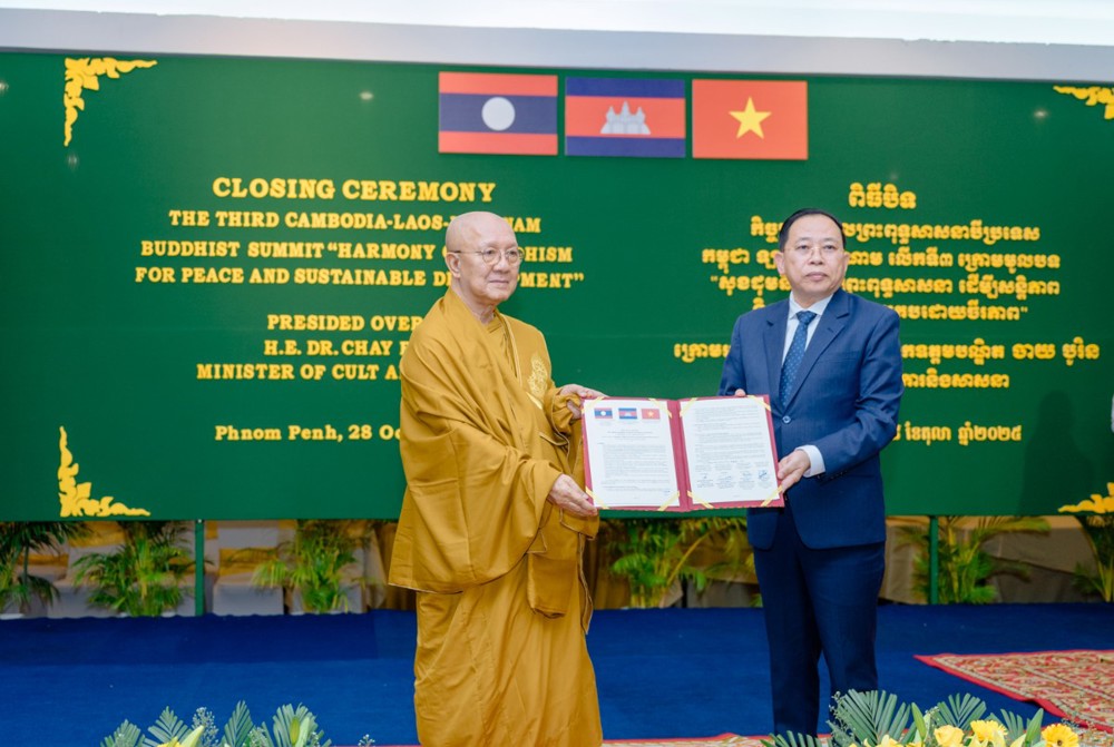 Chiều ngày 28-10, tại Thủ đô Phnom Penh, Campuchia, Hội nghị Thượng đỉnh Phật giáo ba nước Campuchia – Lào – Việt Nam lần thứ III đã trang nghiêm bế mạc, khép lại chương trình làm việc với nhiều kết quả ý nghĩa trong tinh thần đoàn kết, hòa hợp và hữu nghị.