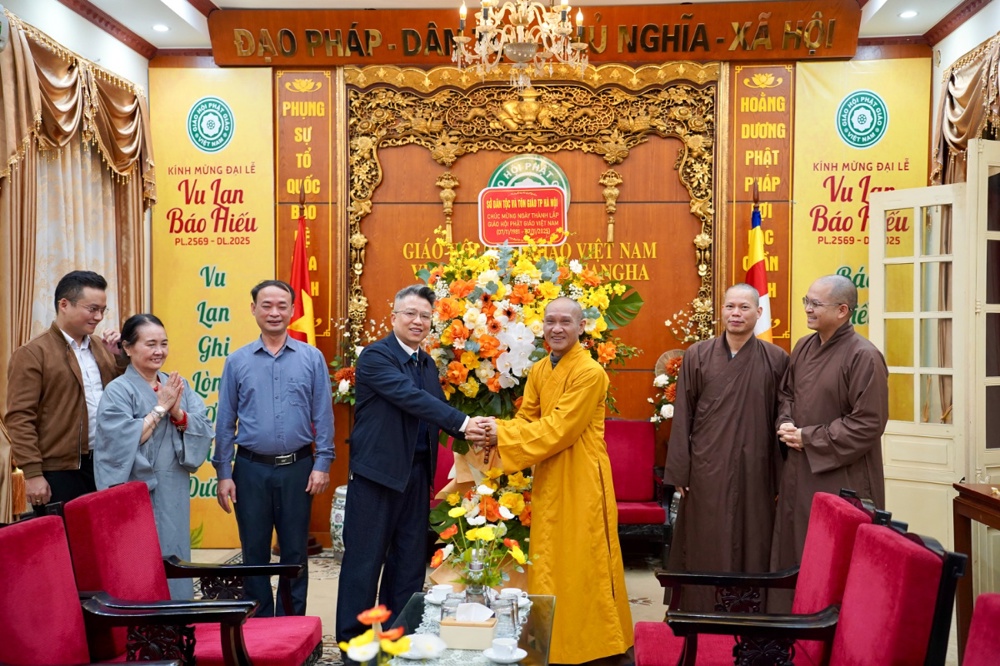 PSO: Chiều ngày 06/11 nhằm ngày 17/9ÂL năm Ất Tỵ, tại Trụ sở TƯ GHPGVN chùa Quán Sứ phái đoàn do ông Phan Vũ - Phó Giám đốc Sở Dân tộc và Tôn giáo thành phố Hà Nội dẫn đầu đoàn đã đến thăm và chúc mừng chư Tôn đức Giáo phẩm Giáo hội Phật giáo Việt Nam (GHPGVN) nhân dịp kỷ niệm 44 năm thành lập GHPGVN (7/11/1981–7/11/2025). Tiếp đón đoàn có Hoà thượng Thích Thanh Điện - Phó chủ tịch HĐTS GHPGVN; Đại đức Thích Nguyên Chính, Ủy viên Thư ký, Phó Chánh Văn phòng Thường trực TƯ GHPGVN, Đại đức Thích Quảng Tiếp – Phó chánh Văn phòng TƯ GHPGVN.