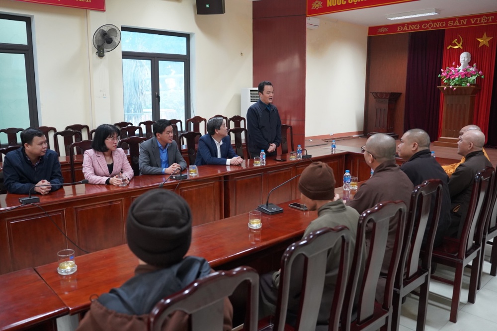 Tại buổi gặp mặt, Hòa thượng Thích Thanh Điện – Trưởng Ban Trị sự GHPGVN tỉnh Lào Cai đã trân trọng cảm ơn sự đón tiếp của các đoàn, tại cuộc gặp mặt Hoà thượng đã phát biểu khái quát các hoạt động tiêu biểu của BTS Phật giáo tỉnh Lào Cai trong năm qua. Hòa thượng cho biết, sau khi thực hiện sáp nhập địa giới hành chính các công tác Phật sự trên toàn tỉnh đã nhanh chóng đi vào ổn định và triển khai nhịp nhàng, hiệu quả dựa trên tinh thần đại đoàn kết toàn dân tộc.