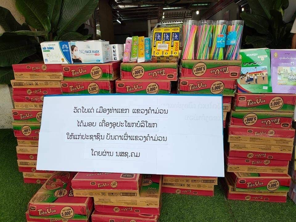 Theo lời kêu gọi từ Mặt trận Tổ quốc tỉnh Khammuon, chư Tăng và Phật tử chùa Bồ Đề đã trao 200 phần cho Mặt trận Tổ quốc tỉnh gồm tập, bút, sách giáo khoa, khẩu trang và 200 phần còn lại được trao cho trung tâm hiến máu tỉnh gồm: nui và các nhu yếu phẩm. Tổng kinh phí là 3.700.000 kíp (tương đương hơn 9 triệu đồng)