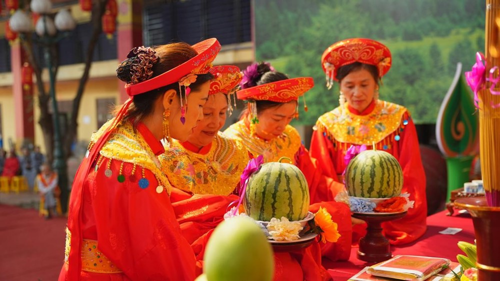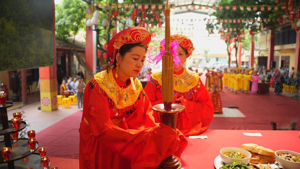 Nghi thức tế Tổ và dâng lục cúng được cử hành trang nghiêm bởi đội tế nam, tế nữ khu dân cư Bằng Liệt. Sáu phẩm vật truyền thống gồm hương, hoa, đăng, trà, quả, thực được dâng lên bằng tất cả tấm lòng thành, biểu trưng cho sự thanh tịnh, cung kính và trọn vẹn. Đặc biệt, bánh chưng, bánh dày và dưa hấu – những lễ vật mang đậm bản sắc văn hóa dân tộc tiếp tục được gìn giữ, như một cách kết nối hiện tại với cội nguồn xa xưa.