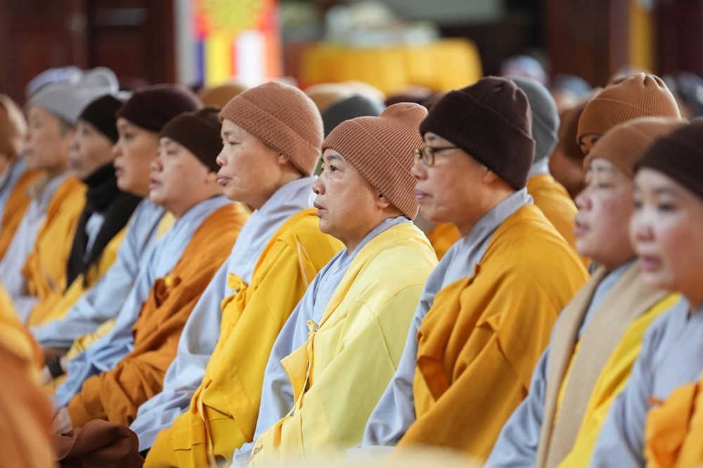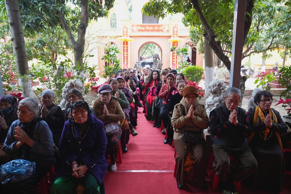 Tại chính điện và Tổ đường, chư Tôn đức đã trang nghiêm cử hành nghi thức cúng Phật và cúng Giác linh. Tiếp đó, chư Tôn đức Tăng Ni đã quang lâm Đại Hùng Bảo Điện, đồng tâm cử hành thời kinh A Di Đà, nhất tâm cầu nguyện cho Giác linh cố Ni trưởng cao đăng thượng phẩm, quả chứng vô sinh, sớm hồi quy Tịnh cảnh.