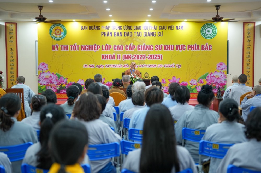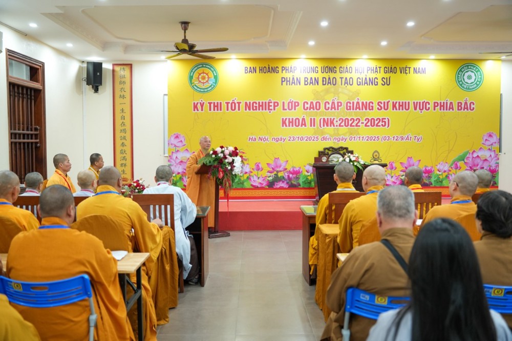 Sáng ngày 24 tháng 10 năm 2025 (tức ngày 4/9 năm Ất Tỵ), tại Giảng đường chùa Vạn Phúc (xã Sóc Sơn, thành phố Hà Nội), Phân ban Đào tạo Giảng sư thuộc Ban Hoằng pháp TƯ GHPGVN đã long trọng tổ chức Lễ khai mạc Kỳ thi tốt nghiệp lớp Cao cấp Giảng sư khu vực phía Bắc, khóa II (niên khóa 2022 – 2025), nhằm đánh giá toàn diện năng lực, kiến thức và phẩm hạnh của Tăng, Ni giảng sinh trước khi chính thức bước vào hàng ngũ giảng sư của Giáo hội Phật giáo Việt Nam.