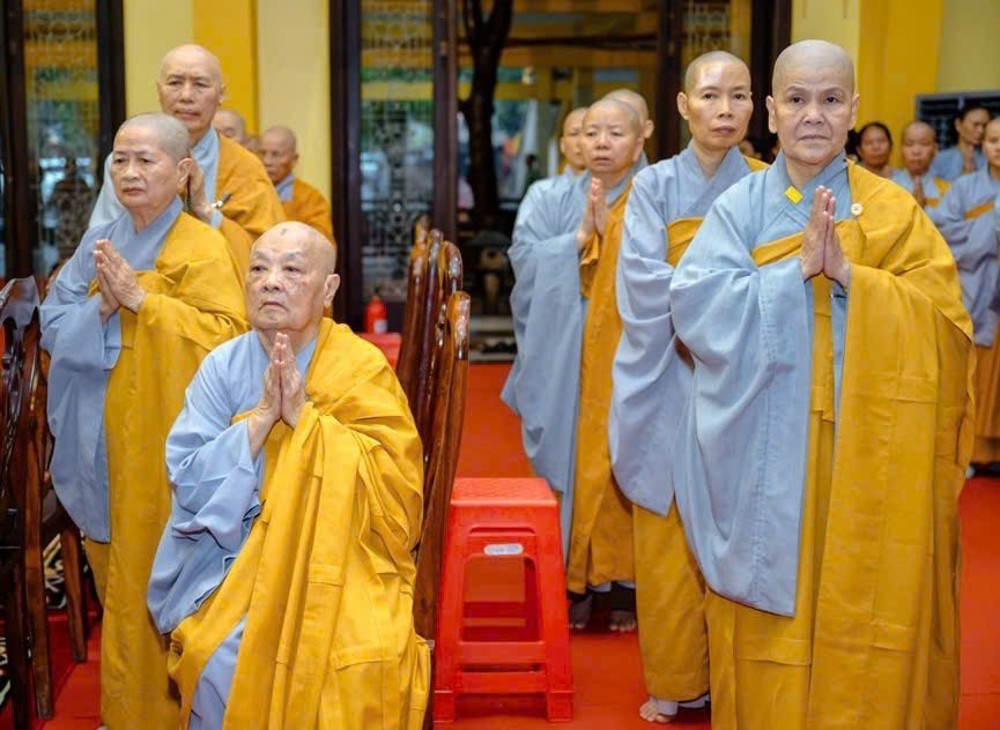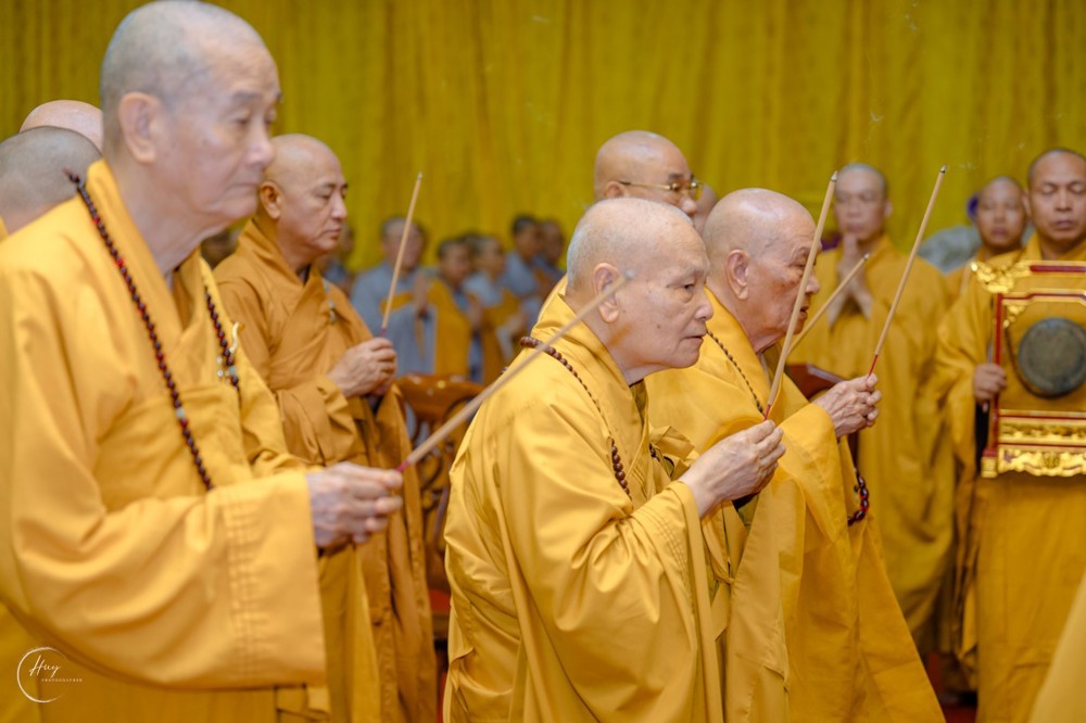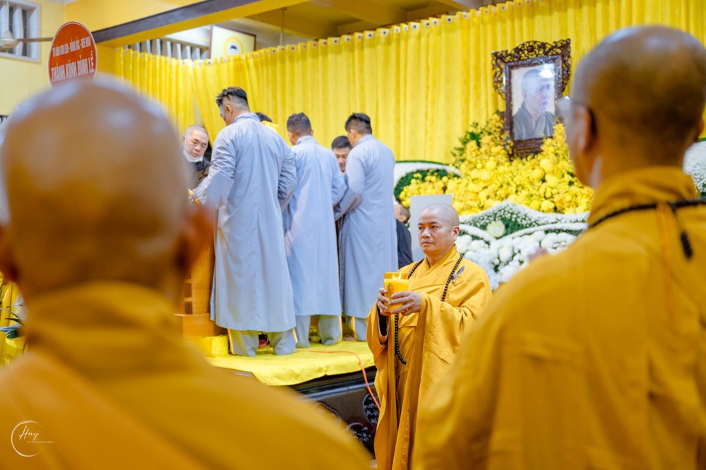 Toàn thể Tăng Ni, Phật tử đồng tâm hộ niệm, tiếng niệm Phật vang vọng không ngớt, kết thành đạo tràng trang nghiêm, linh thiêng, cùng bày tỏ niềm kính tiếc vô biên.