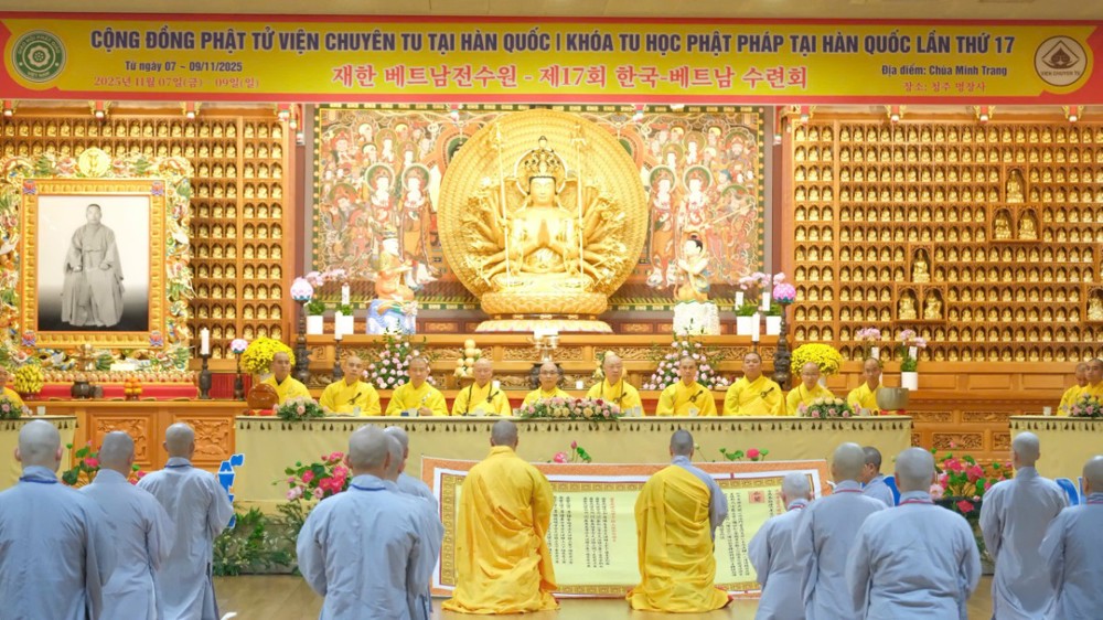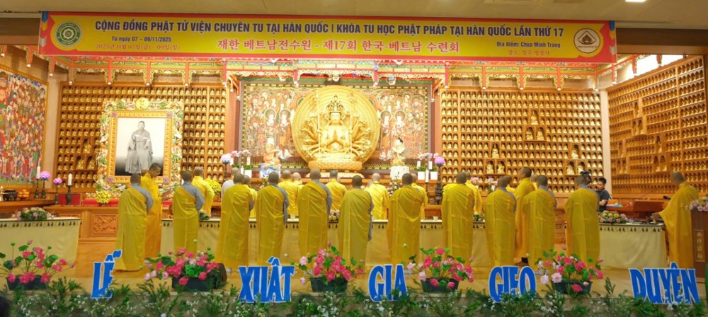 PSO - Tối ngày 07/11/2025, trong không khí trang nghiêm tại chùa Minh Trang (thành phố Cheongju, Hàn Quốc), Ban Tổ chức khóa tu học Phật pháp lần thứ 17 đã trang nghiêm cử hành Lễ thế phát xuất gia gieo duyên và truyền Sa-di giới cho 31 giới tử, những người con Việt xa quê mang khát nguyện tìm về nẻo đạo.