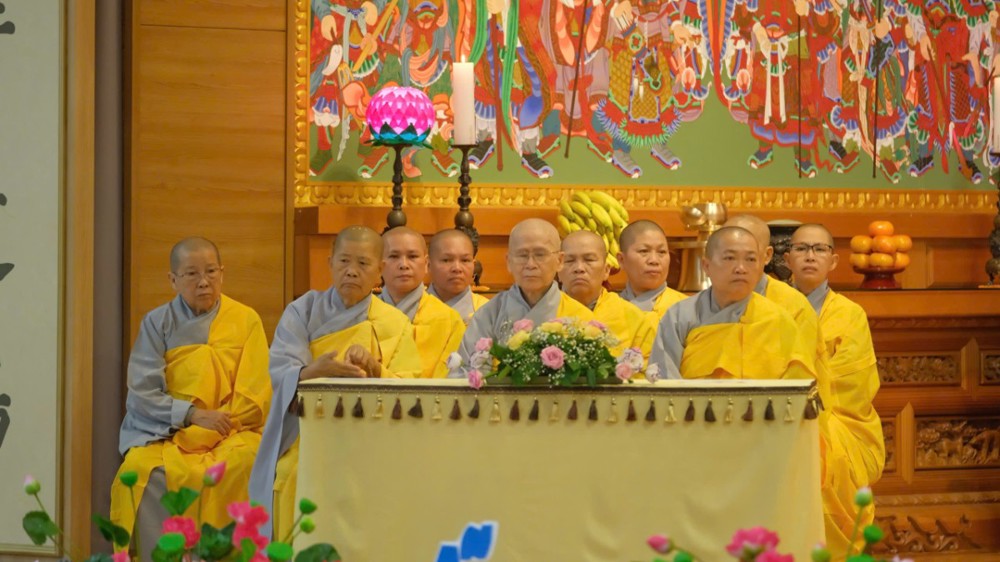 Được sự chứng minh của chư Tôn Thiền đức quang lâm nơi Đại hùng Bảo điện: TT. Thích Thường Tín, Hòa thượng Đàn đầu; TT. Thích Thiện Thuận, Yết-ma A-xà-lê; TT. Thích Hạnh Bảo, Giáo thọ A-xà-lê cùng chư Tôn đức Tăng Ni nhị bộ: ĐĐ. Thích Tuệ Nhật, ĐĐ. Thích Thiện Lạc, ĐĐ. Thích Tuệ Minh, ĐĐ. Thích Minh Phước, ĐĐ. Thích Thiện Hưng, ĐĐ. Thích Thiện Tài, ĐĐ. Thích Mãn Thiện; NS. Thích Nữ Thuần Lương, NS. Thích Nữ Diệu Lành, NS. Thích Nữ Linh Toàn, cùng quý SC. Linh Hỷ, SC. Kiên Bích, SC. Hiền Diệu, SC. Thể Vân, SC. Bảo Châu, SC. Hòa Hiệp và SC. Đức Thuận.