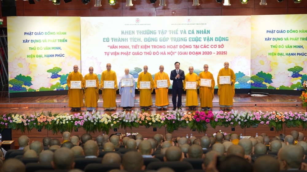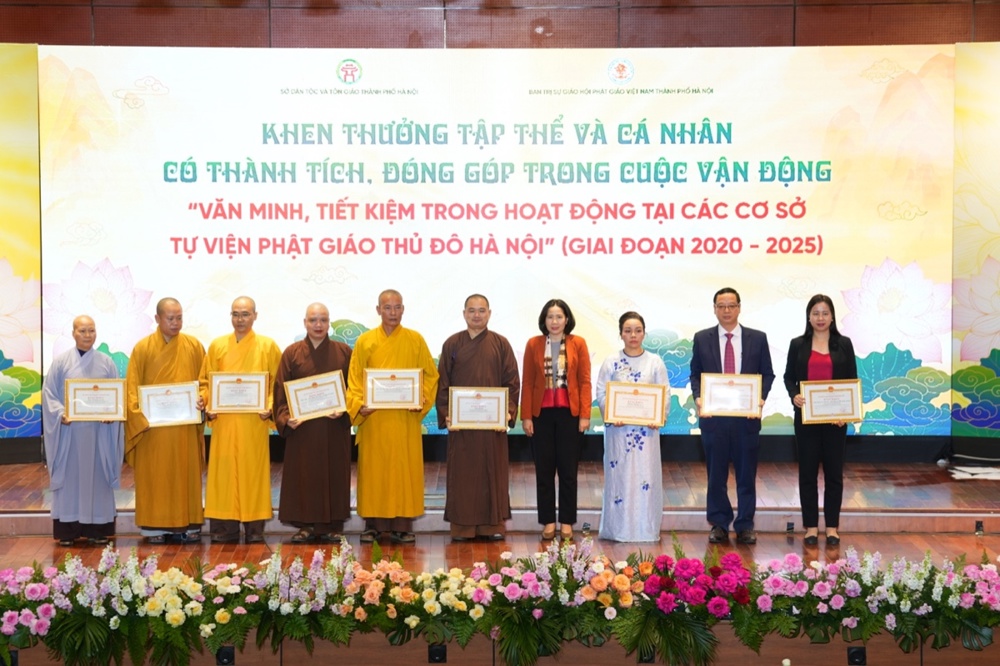 Đặc biệt, để ghi nhận những đóng góp tích cực của GHPGVN thành phố Hà Nội, của chư tôn đức, Tăng Ni, Phật tử Thủ đô trong Cuộc vận động “Văn minh, tiết kiệm trong hoạt động tại các cơ sở tự viện Phật giáo Thủ đô Hà Nội” giai đoạn 2020-2025, UBND Thành phố Hà Nội đã quyết định tặng Bằng khen cho các tập thể và cá nhân có nhiều đóng góp, thành tích.