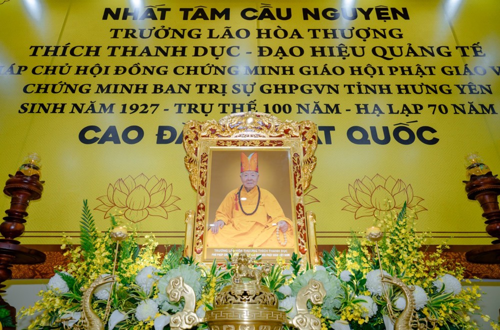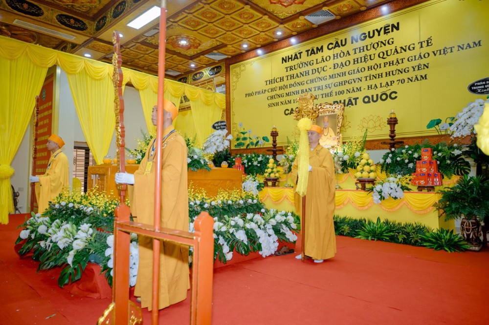Trước Giác linh đài, làn hương trầm quyện tỏa, chư tôn giáo phẩm Hội đồng Chứng minh, Hội đồng Trị sự cùng toàn thể Tăng Ni, Phật tử đồng dâng nén tâm hương tưởng niệm, nhập từ bi quán, trì kinh cầu nguyện Giác linh Trưởng lão Hòa thượng cao đăng Phật quốc. Đồng thời, đại chúng nguyện kế thừa chí nguyện của Ngài, tiếp nối đạo mạch, hòa hợp thanh tịnh, chung sức xây dựng Giáo hội ngày càng trang nghiêm, hưng thịnh, lợi lạc quần sinh.
