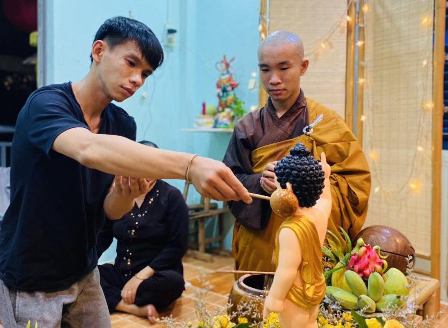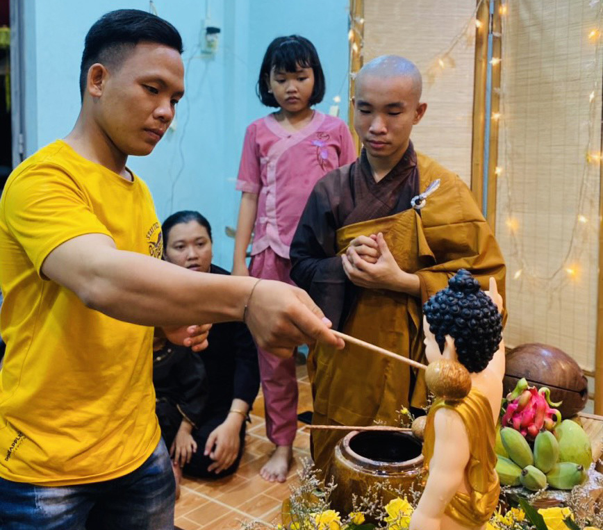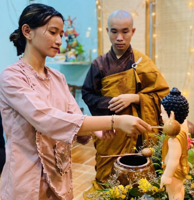 Buổi lễ có dự tham dự của ĐĐ. Thích An Nhất – Chủ nhiệm Câu lạc bộ. Dưới sự hướng dẫn của Đại đức, các Phật tử đã cùng đảnh lễ Tam bảo và Tôn Tượng sơ sanh, niêm hương bạch Phật, tụng kinh mừng Khánh đản và trang nghiêm cử hành nghi thức Tắm Phật truyền thống, cầu nguyện cho nạn dịch bệnh sớm tiêu từ, quốc thái dân an, thế giới hoà bình, chúng sinh an lạc.