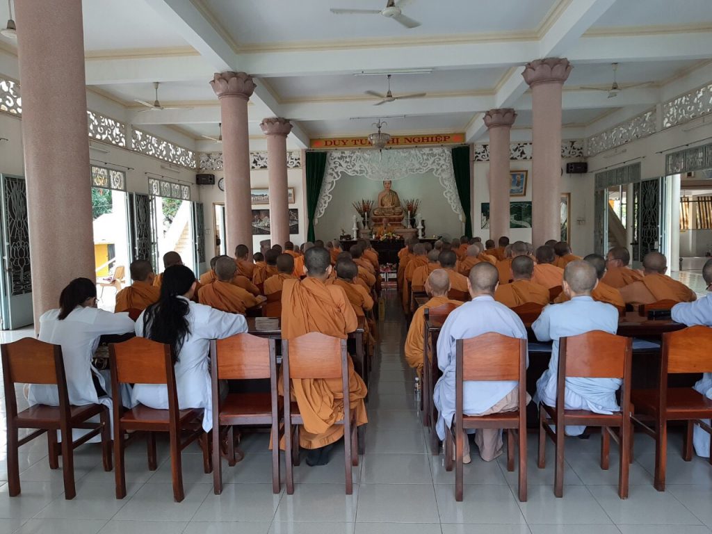 Thời pháp đầu tiên do HT. Trưởng BTS GHPGVN tỉnh trực tiếp chia sẻ, Trường hạ Ni vô cùng hoan hỷ, 117 vị hành giả an cư thanh tịnh thân tâm, lắng nghe lời chỉ dạy cao quý của HT. HT nhấn mạnh: "Kiết hạ An cư là cơ hội cho chúng ta cùng tập trung về một điểm, để ôn lại lời dạy của Đức Phật, trì tụng giới bổn, chia sẻ kinh, luật, luận, trau dồi kiến thức cho nhau, giúp đỡ hỗ trợ nhau cùng tinh tấn trên con đường tu tập giác ngộ giải thoát. Phải nói, đây là điều rất quan trọng cho tu sĩ chúng ta, chín tháng dấn thân cống hiến, phục vụ cho đạo pháp và dân tộc, ba tháng an cư là thời gian tốt nhất để bồi dưỡng thân tâm, kiến tạo tri thức cho bản thân mình, đây là tư lương, hành trang quý giá cho người tu sĩ chúng ta".
