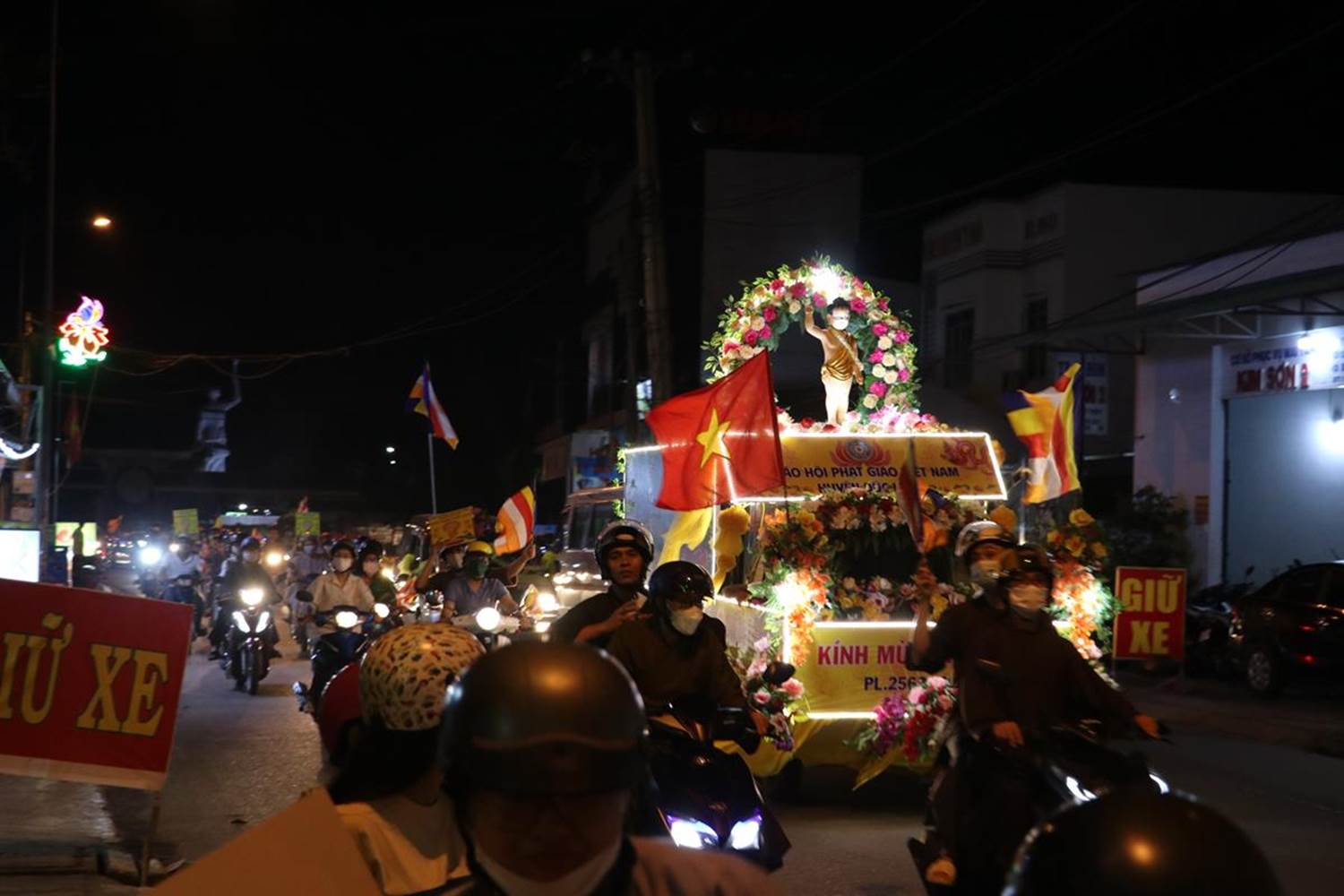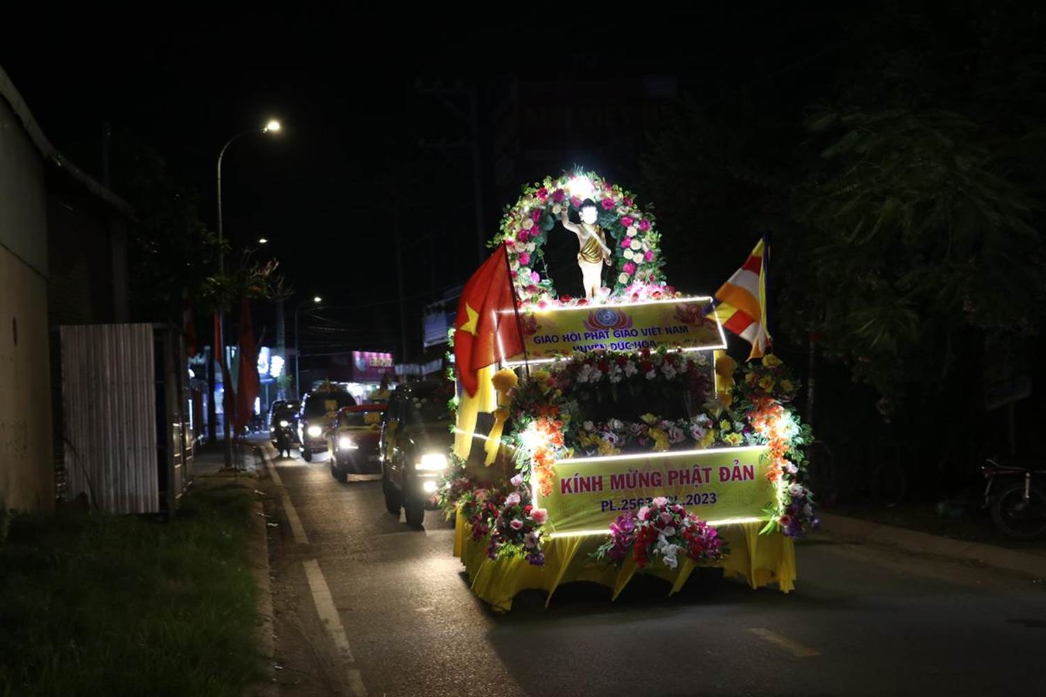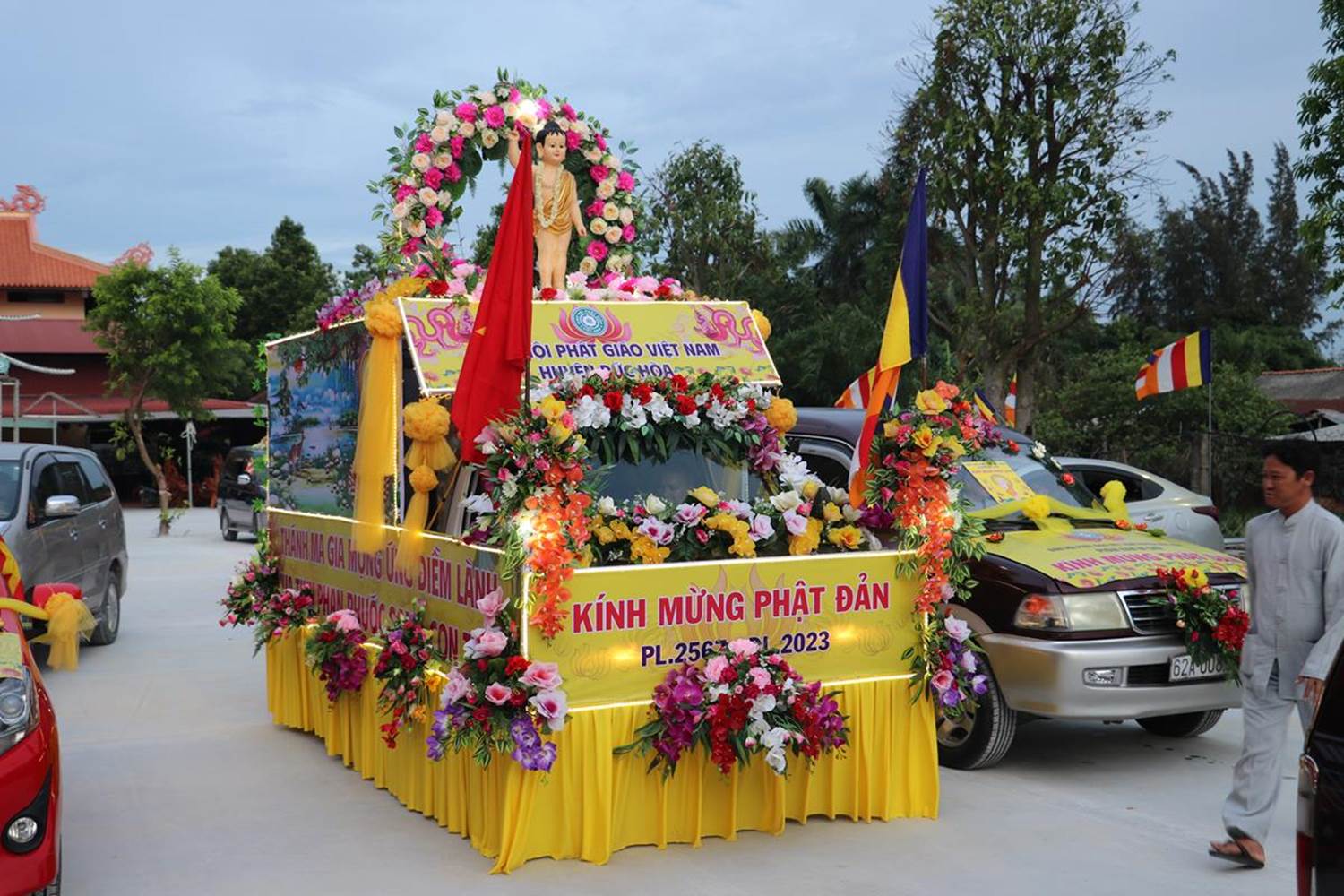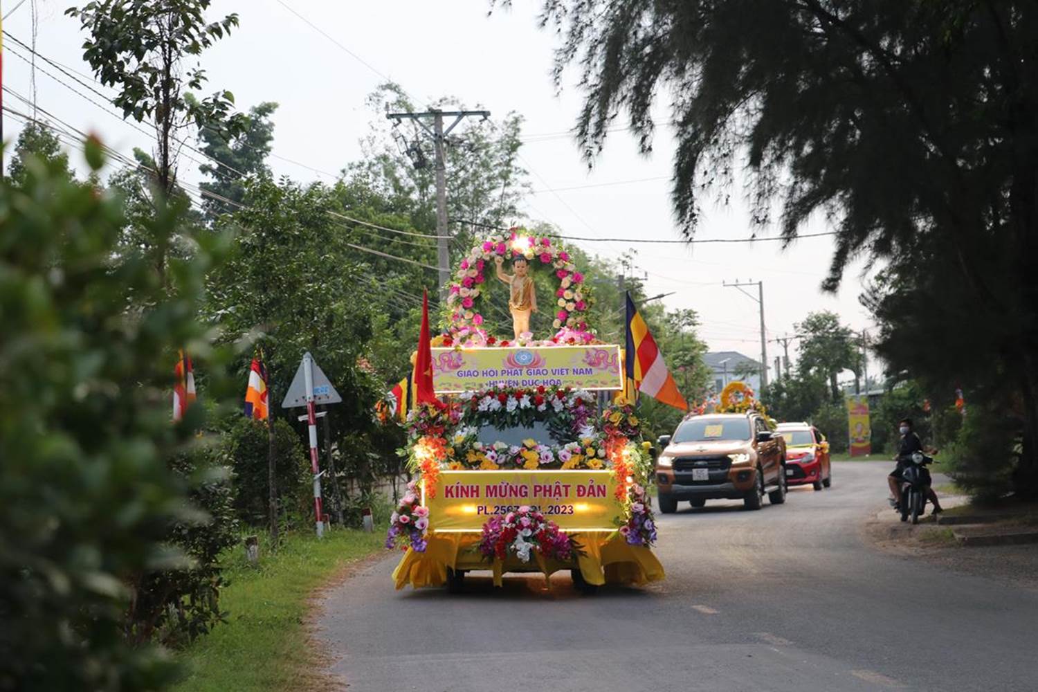Trong năm nay, Phật giáo Đức Hòa có hơn 10 xe hoa được thiết trí đặc sắc, mang đậm dấu ấn Phật Đản. Tại các tuyến đường và cầu mà đoàn xe hoa đi ngang qua rất đông người dân đổ ra đường để chiêm bái.