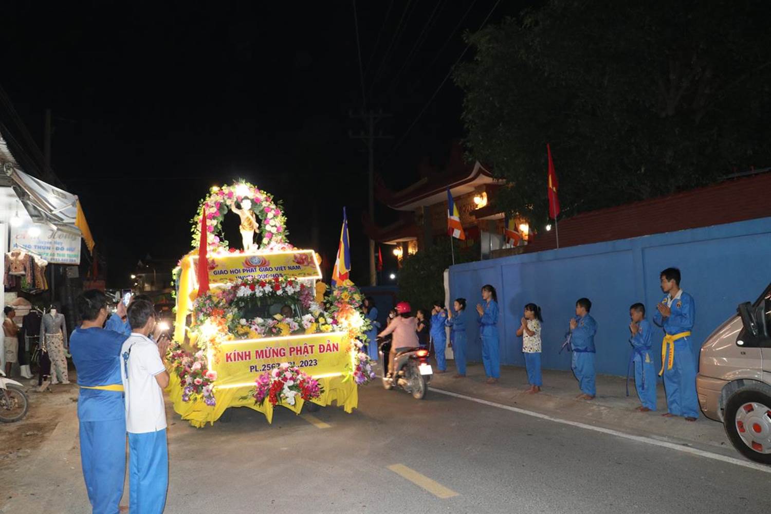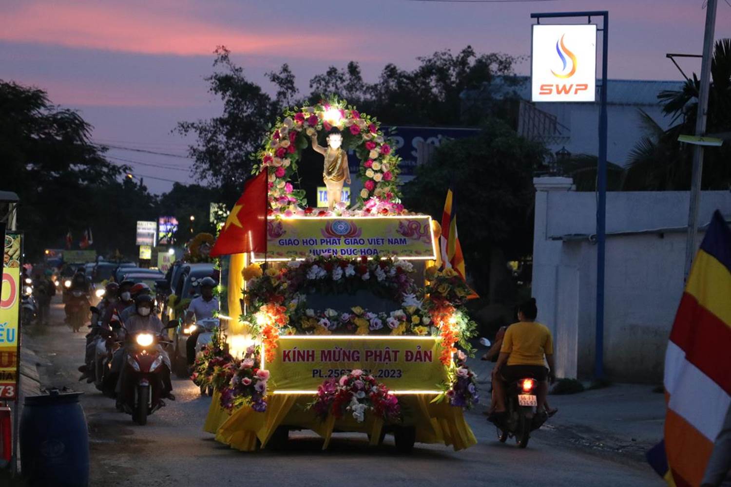 Chiều ngày 31/05/2023 (nhằm ngày 13/04 năm Quý Mão), tại chùa Pháp Minh (ấp Giồng Lớn, xã Mỹ Hạnh Nam, huyện Đức Hòa, tỉnh Long An) chư Tôn đức Ban Thường trực Ban Trị sự, Tăng Ni tu học trên địa bàn huyện và đông đảo Phật tử đã vân tập về chùa sau đó diễu hành xe hoa trên các tuyến đường thuộc huyện Đức Hòa.