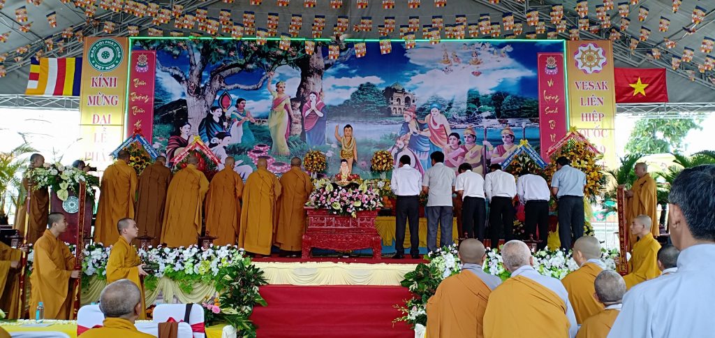 Quang lâm chứng minh buổi lễ có HT. Thích Thiện Tài Phó BTS GHPGVN Tỉnh – Trưởng ban nghi lễ GHPGVN tỉnh; ĐĐ. Thích An Nhật – Trưởng ban Hướng dẫn Phật tử GHPGVN tỉnh; HT. Thích Thiện Ngọc chứng minh BTS GHPGVN huyện ; HT. Thích Bửu Tâm chứng minh BTS GHPGVN huyện ; HT. Thích Bửu Ứng Trưởng BTS GHPGVN huyện – Trưởng ban tổ chức đại lễ; HT. Thích Tâm Nguyên – Trưởng ban Pháp chế BTS GHPGVN huyện ; ĐĐ. Thích Trí Minh Phó ban thường trực BTS GHPGVN huyện ; ĐĐ. Thích Tâm Hướng chánh Thư ký ban BTS GHPGVN huyện . Về phía chư Ni có Sư cô Thích Nữ Như Hiếu Phó Thư ký Phật giáo huyện;cùng chư tôn đức Tăng Ni các tự viện trong địa bàn huyện .