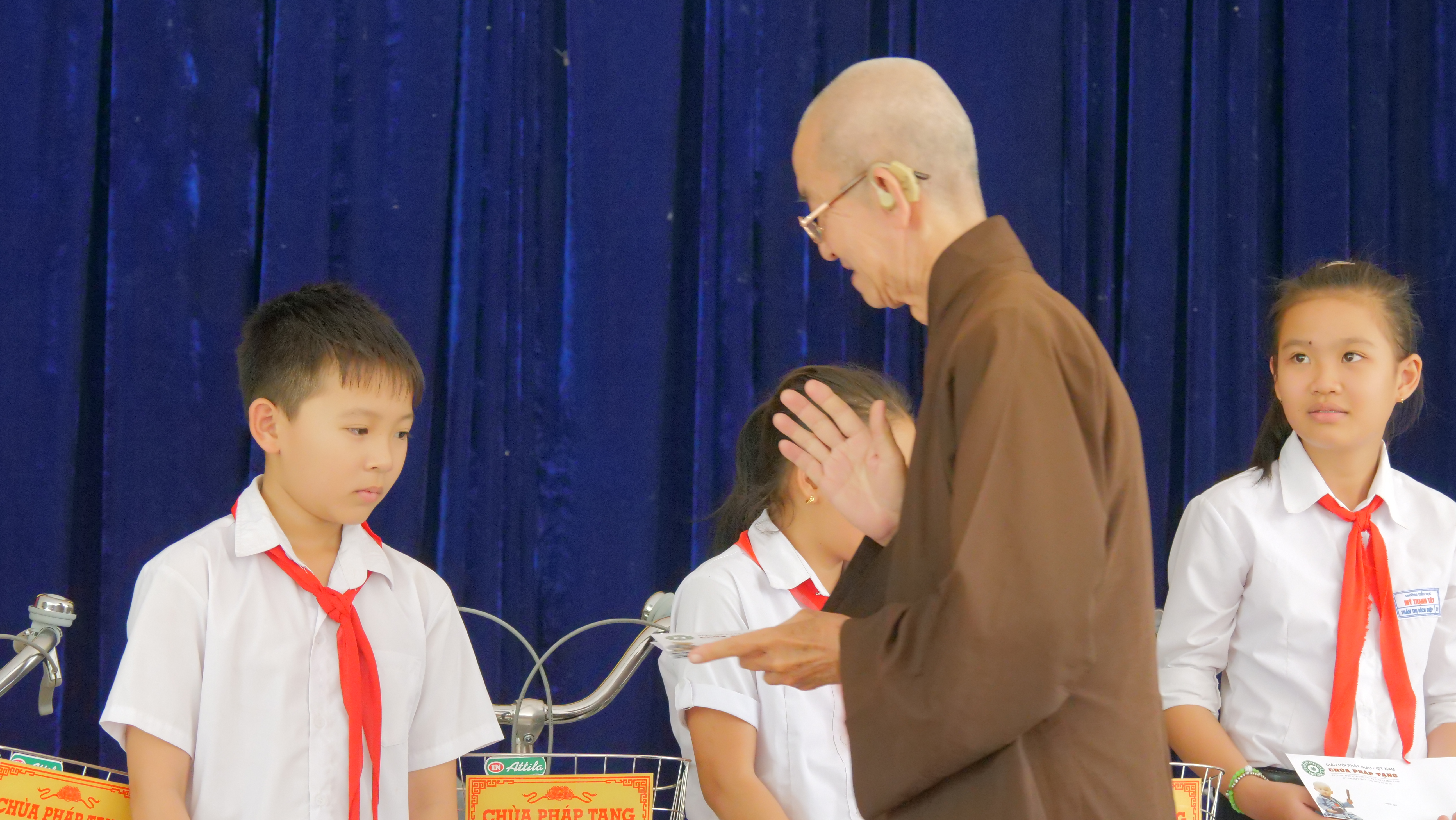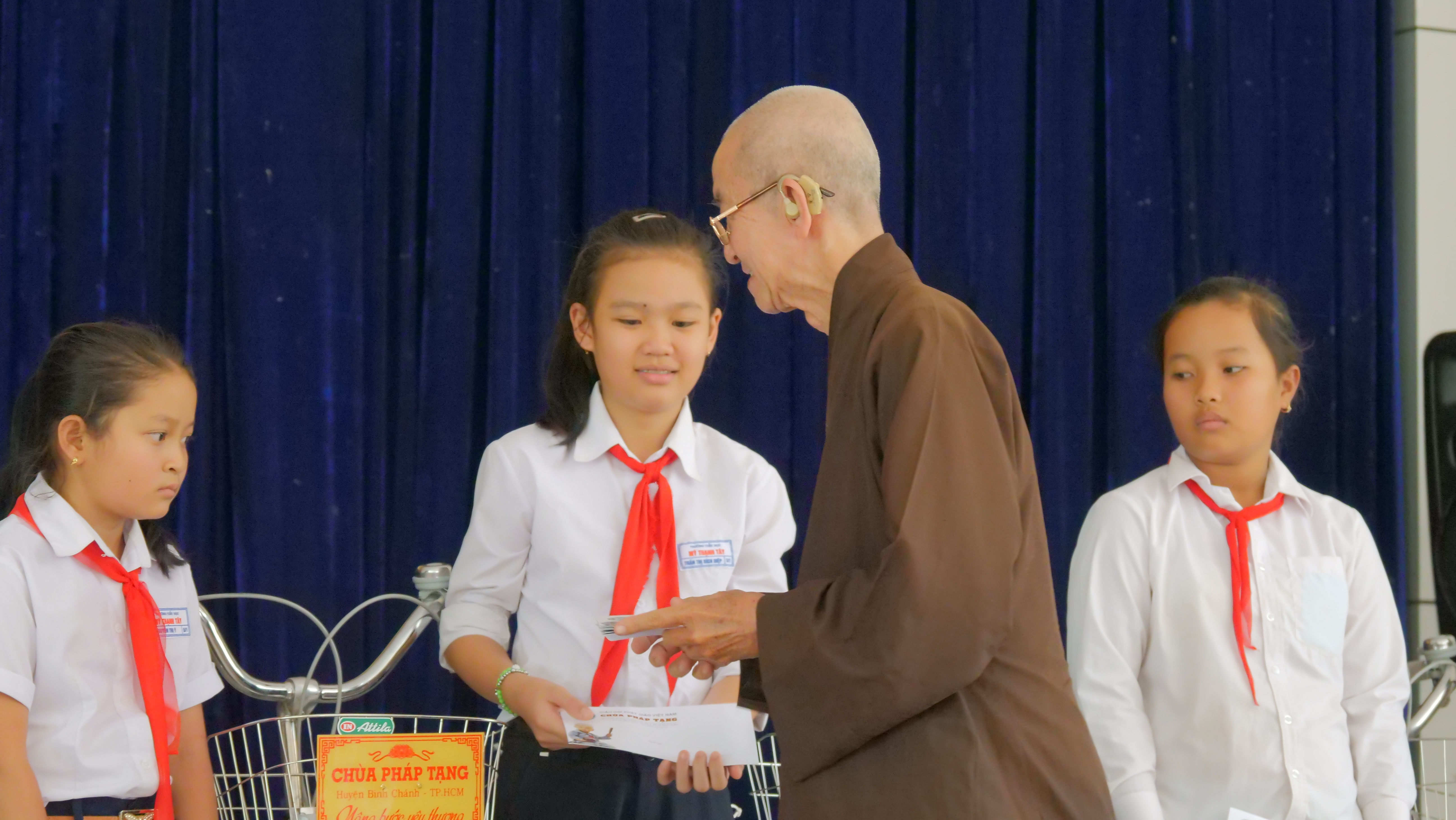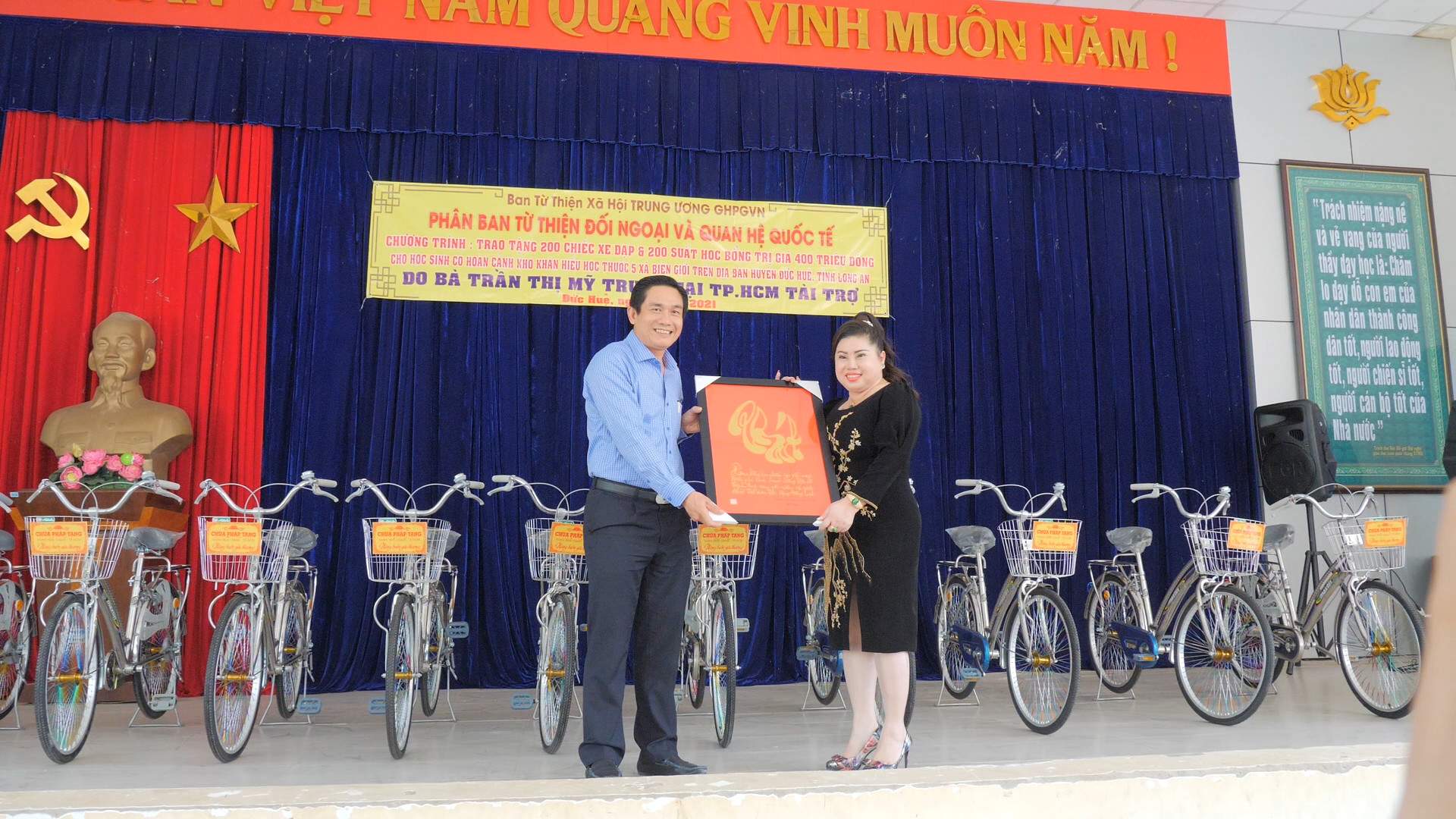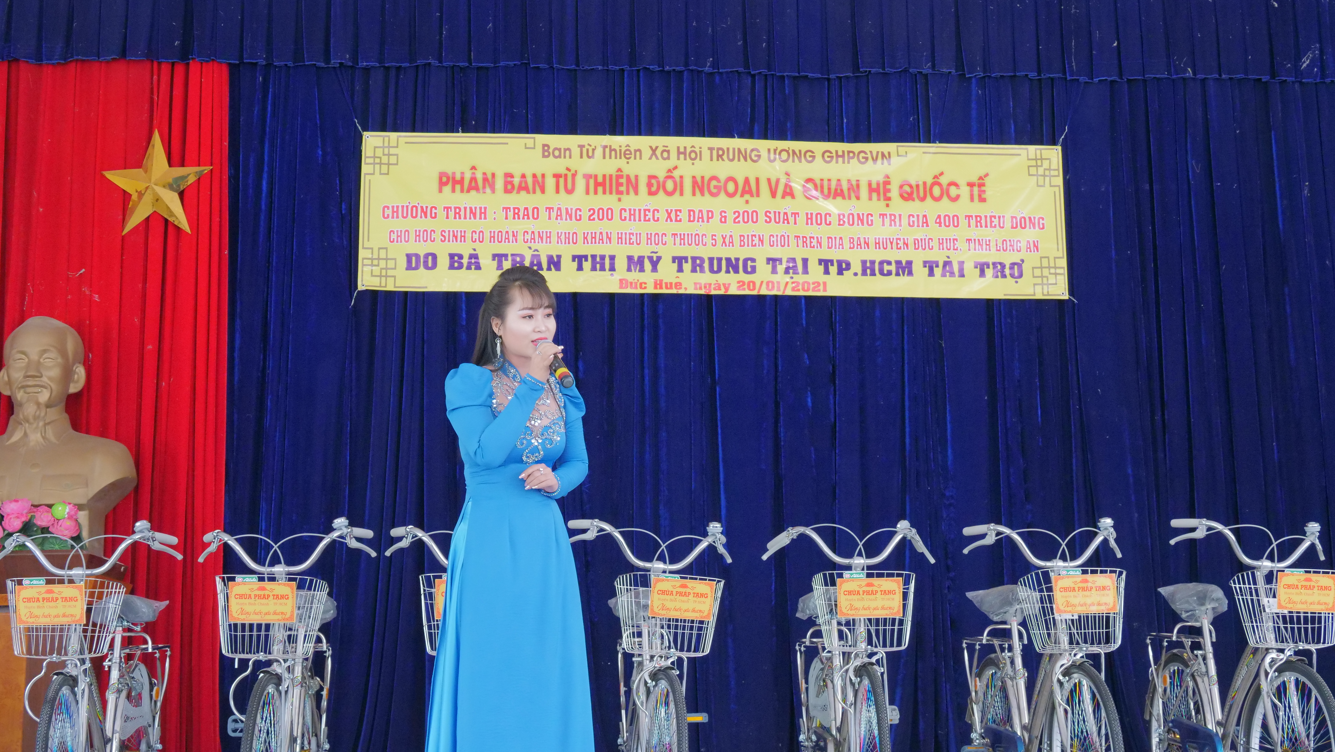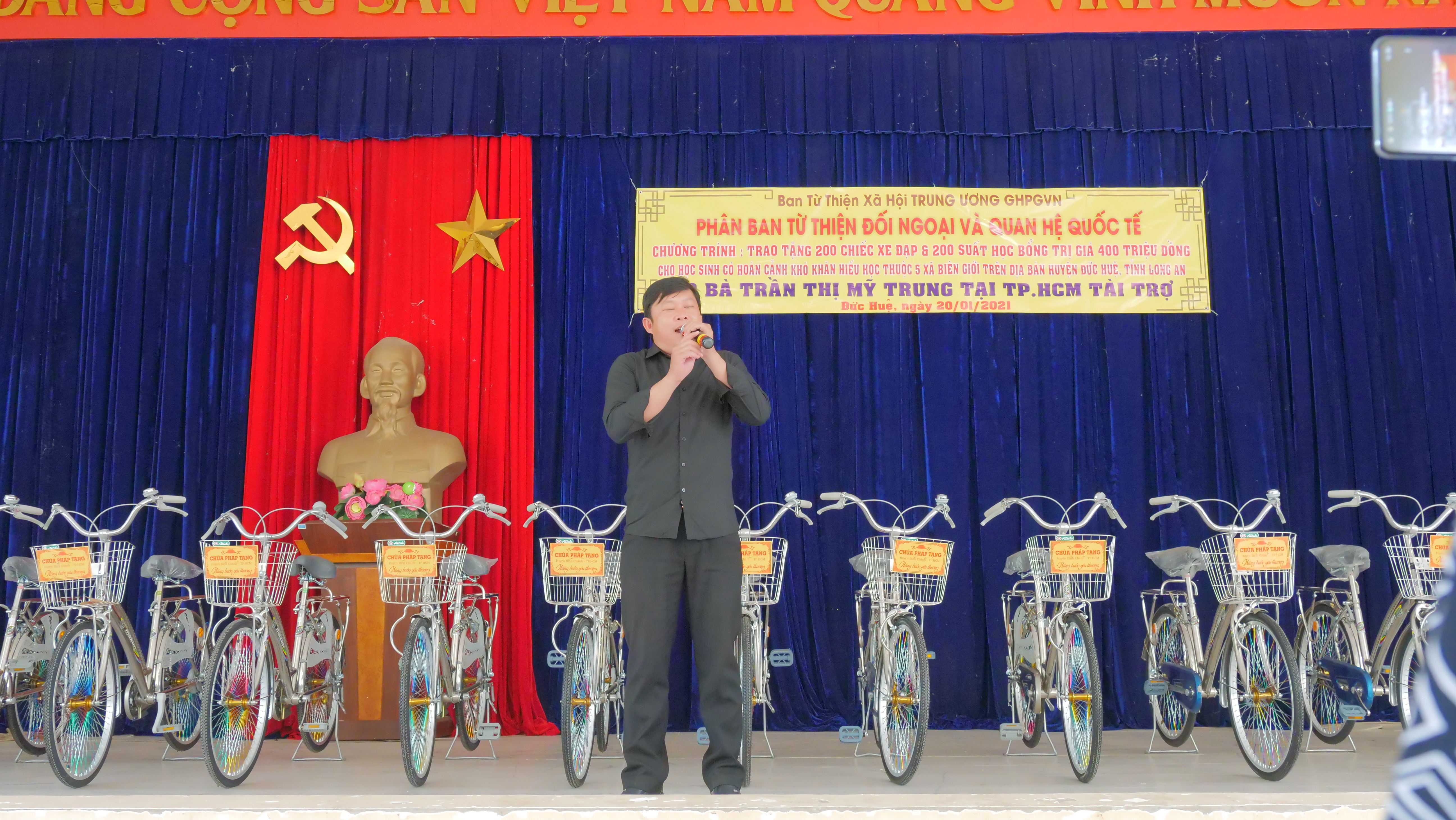 PSO - Truyền thống hiếu học từ ngàn xưa đến nay vẫn luôn là niềm tự hào của người con đất Việt. Nêu cao tinh thần đó và tiếp thêm nguồn khích lệ cho các em học sinh hiếu học có hoàn cảnh khó khăn trên địa bàn huyện Đức Huệ, tỉnh Long An. Nhân kỷ niệm ngày Phật Thích Ca Thành Đạo, lan tỏa tinh thần Từ bi – Giác ngộ của nhà Phật, ngày 20/01/2021 (nhằm mùng 8/12 năm Canh Tý), Phân ban Từ thiện Đối ngoại và Quan hệ (ĐN&QH) Quốc tế đã thực hiện chương trình trao tặng 200 học bổng và 200 xe đạp cho các em hiếu học, khó khăn trong niên học 2020-2021.