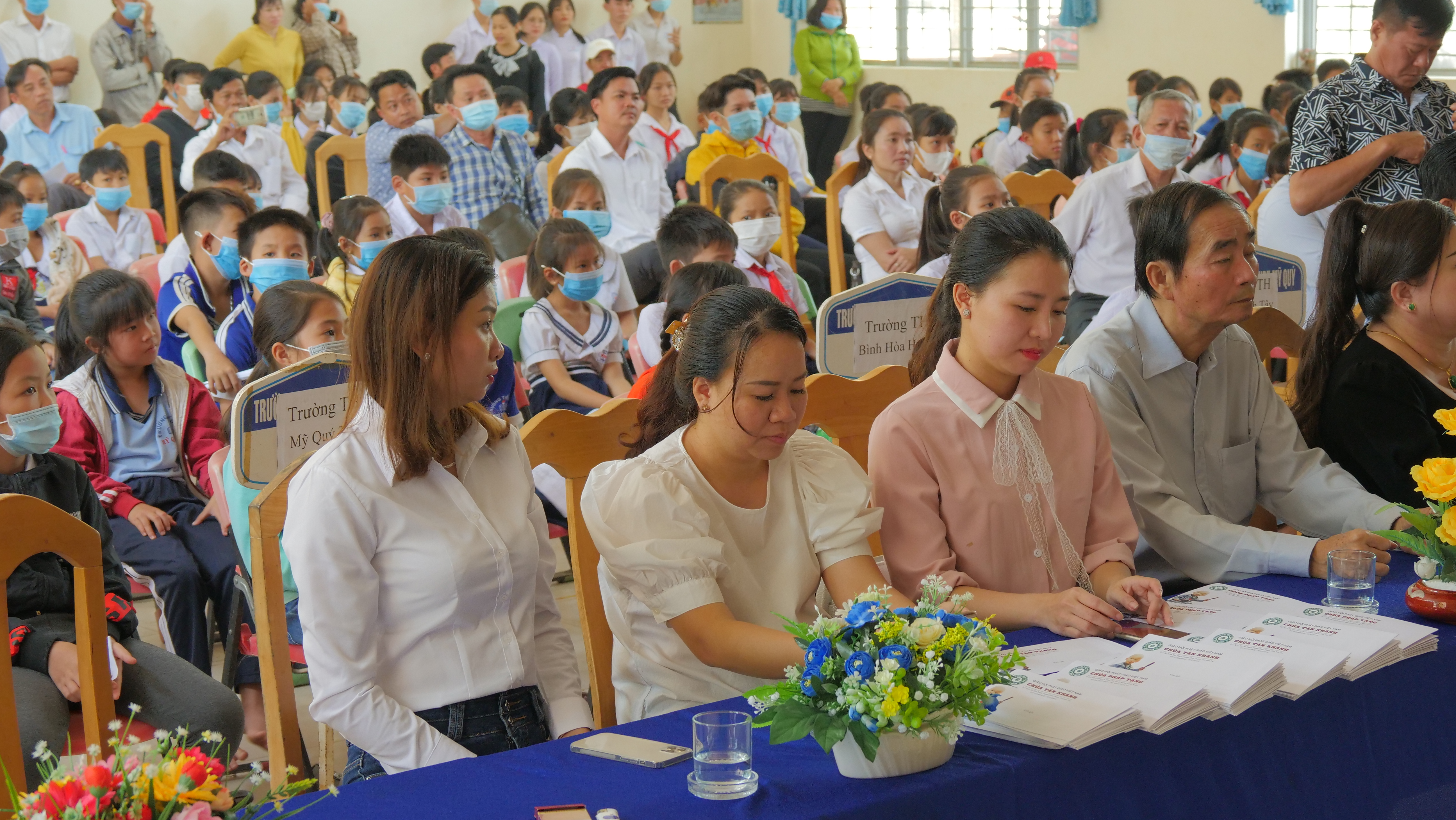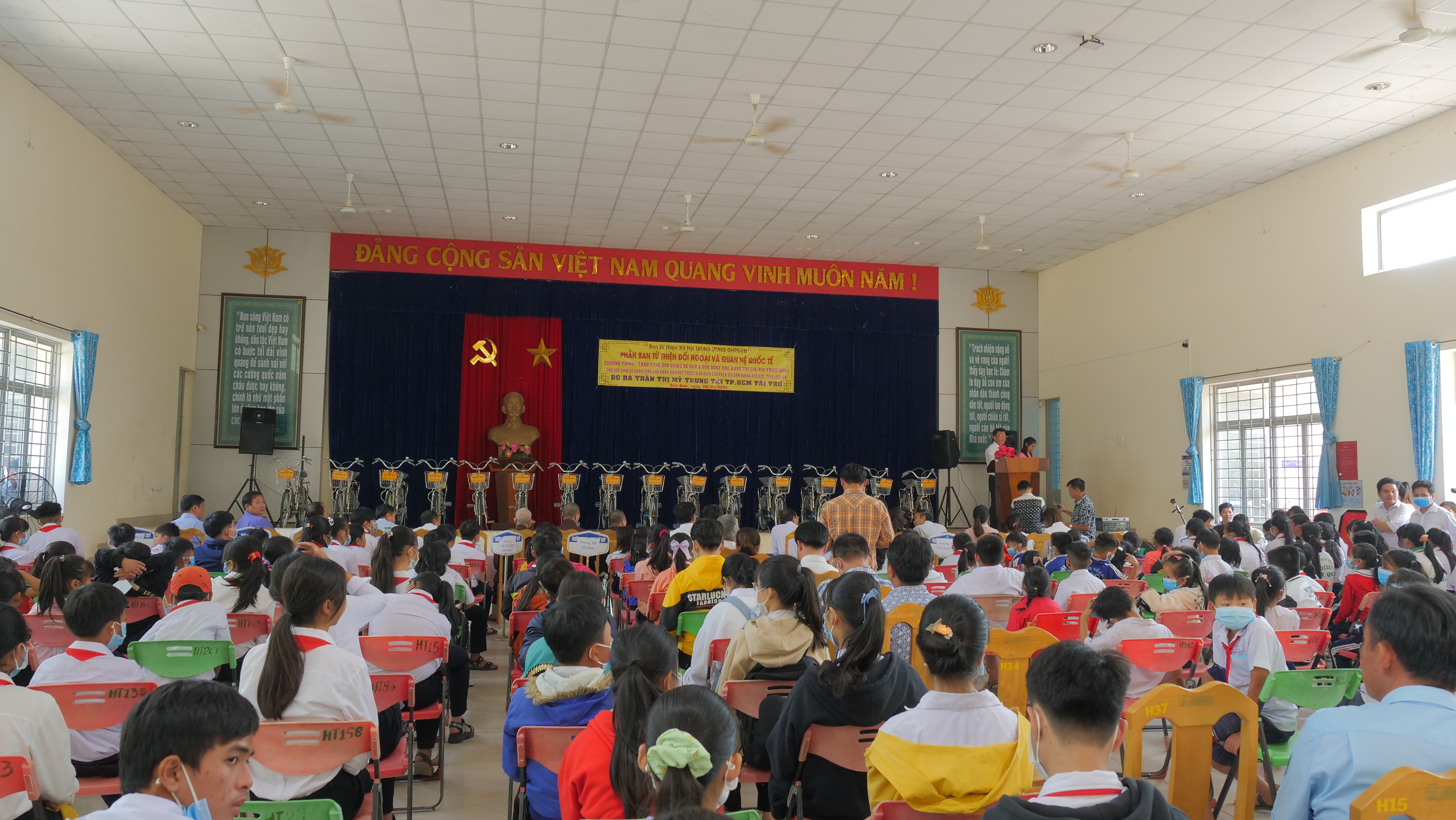 Song hành với các công tác an sinh xã hội, nhằm hỗ trợ cho các em học sinh khó khăn, hiếu học có điều kiện đến trường, nhất là các trẻ em ở vùng biên giới, sau các tiết mục văn nghệ đậm tình quê hương, đại diện nhà tài trợ đã có đôi lời phát biểu động viên, chúc sức khỏe và khuyến khích các em cố gắng phấn đấu học tập, hướng đến một tương lai tốt đẹp hơn.
