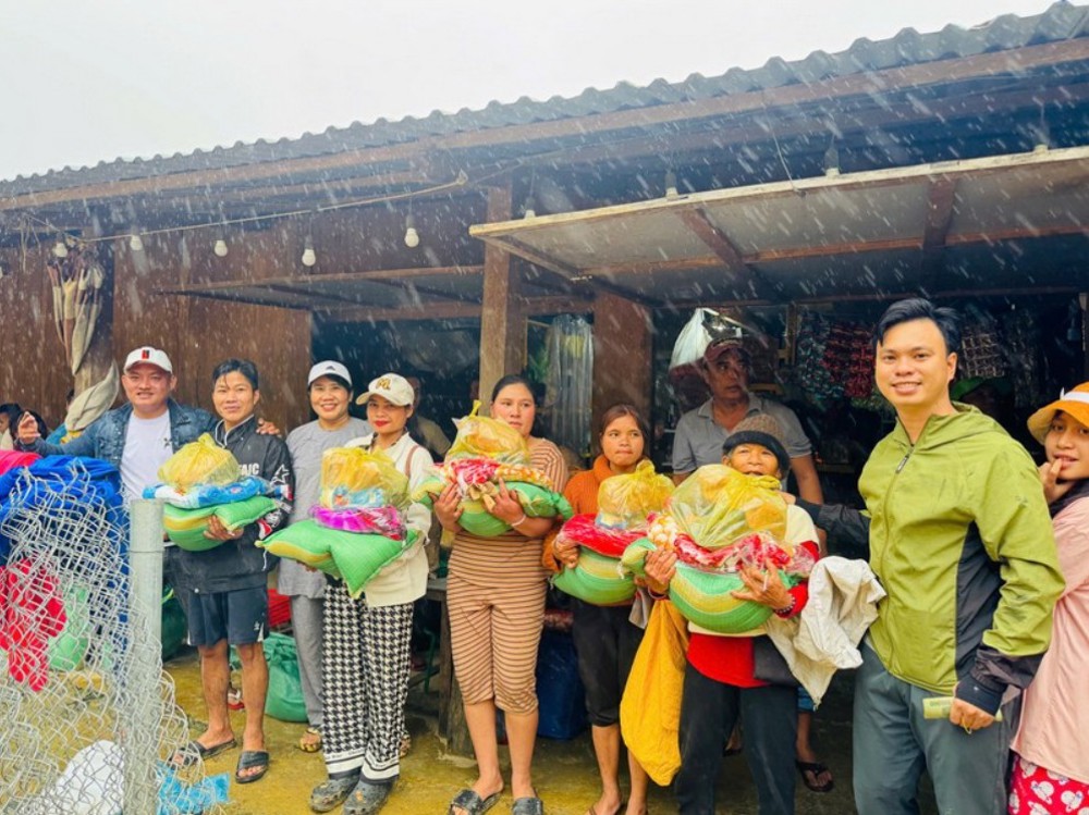 Tại làng Tak Vinh 1, nơi có 22 hộ dân sinh sống trên đồi cao, bà con đã đứng chờ từ sớm. Dù đường xa, quà nặng, phải gùi bộ qua những con dốc dài, nhưng trên gương mặt mỗi người đều ánh lên niềm vui và sự hạnh phúc. Đoàn đã trao tặng đến từng hộ các phần quà thiết yếu gồm: gạo, mền, nước mắm, nước tương, muối, cá khô và một ít tiền mặt, như một lời động viên để bà con vững lòng vượt qua giai đoạn khó khăn.