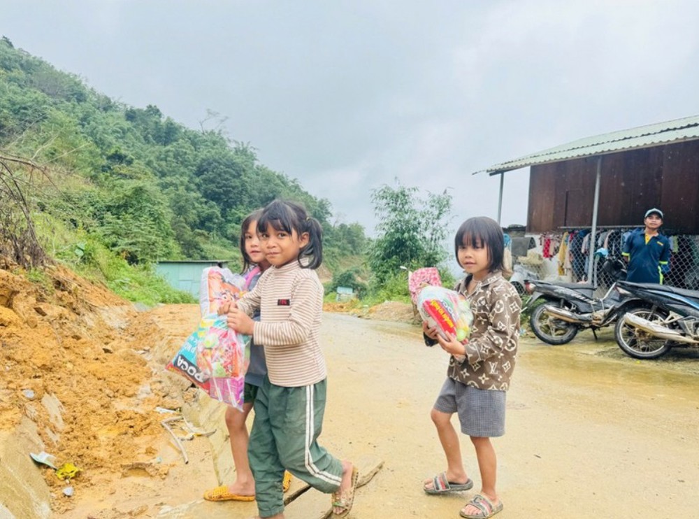 Bên cạnh đó, đoàn còn dành tặng 100 phần quà cho trẻ em trong làng. Những gói bánh, viên kẹo, hộp sữa, rau câu, tuy giản dị nhưng mang đến niềm vui trọn vẹn cho các em nhỏ. Nụ cười hồn nhiên của trẻ thơ giữa núi rừng nghèo khó đã xua tan phần nào mệt nhọc của một hành trình dài.