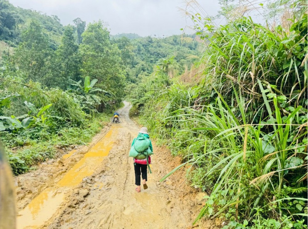 Vượt qua những đoạn đường hiểm trở tưởng chừng đã đến nơi, nhưng từ đó đoàn vẫn phải đi bộ băng đồi, leo dốc, lội qua những con đường đất núi mới vào được làng Tak Vinh 1 và làng Tak Vinh 2 – những bản làng nằm cheo leo giữa đại ngàn.