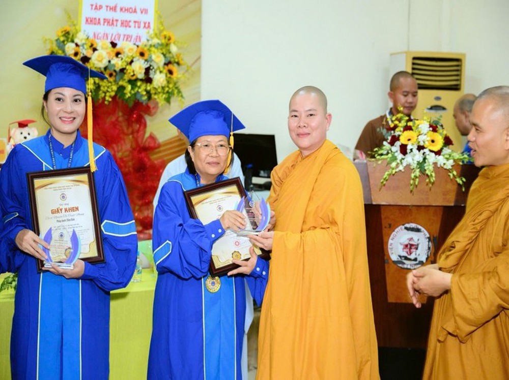 Ni sư dạy rằng Ni Sư tri ân các bạn, các bạn tốt nghiệp năm nay, mong mọi người phát nguyện học Phật suốt đời dù cho ai có chọn tiếp tục học cao hơn hay dù không tiếp tục học nữa thì sở nguyện tu học vẫn có trong lòng.