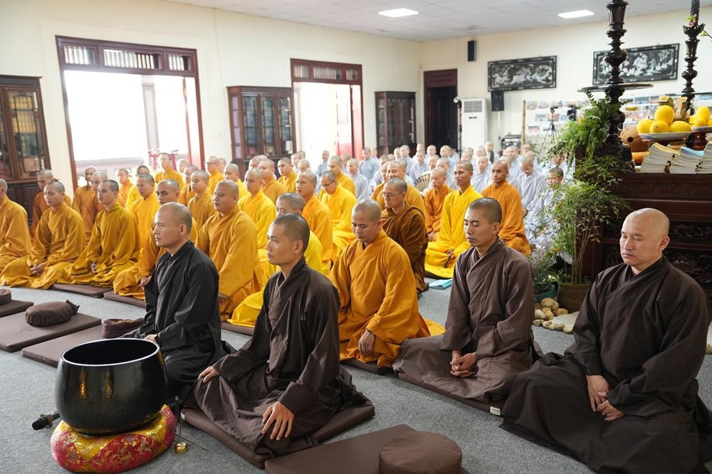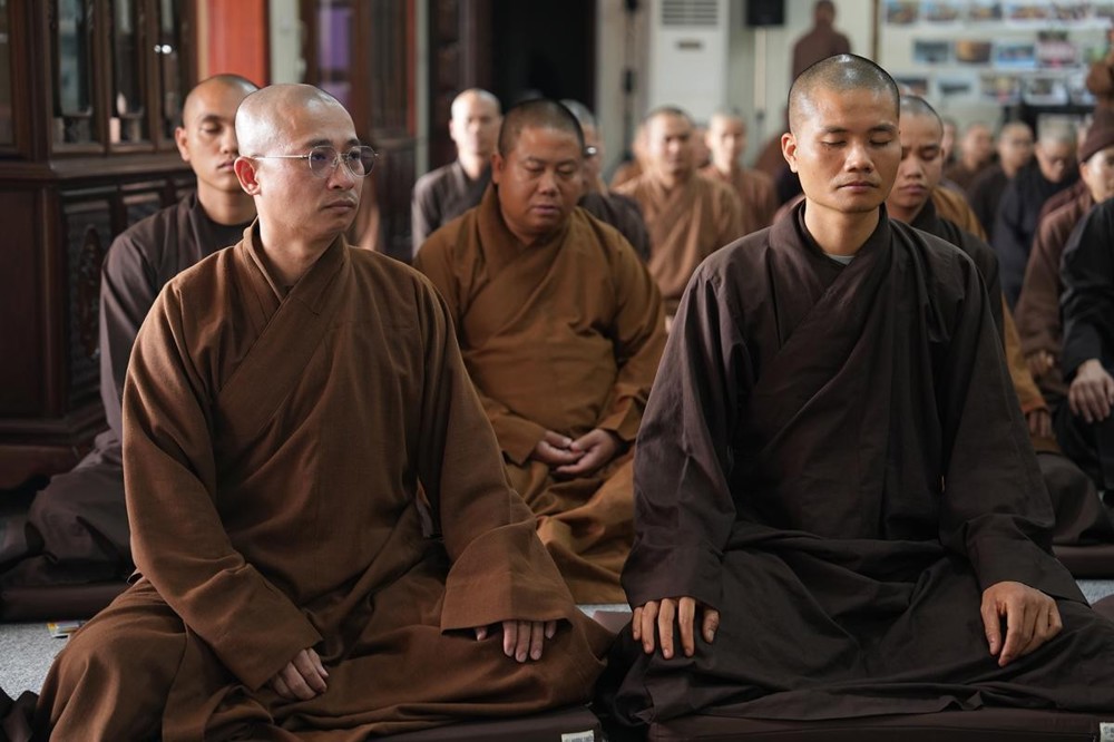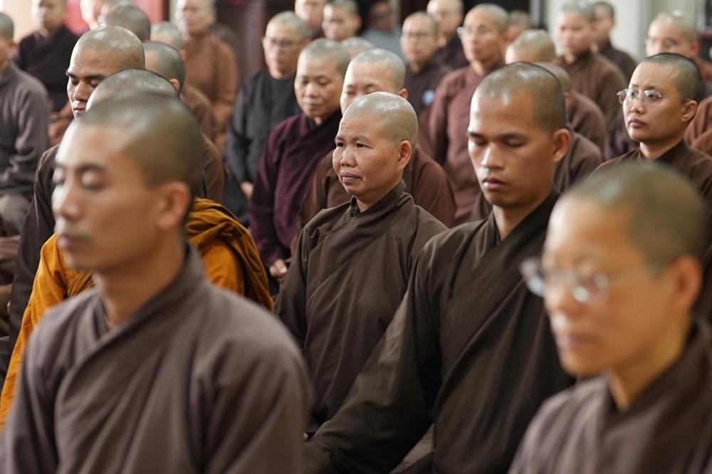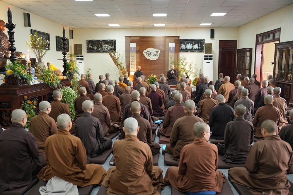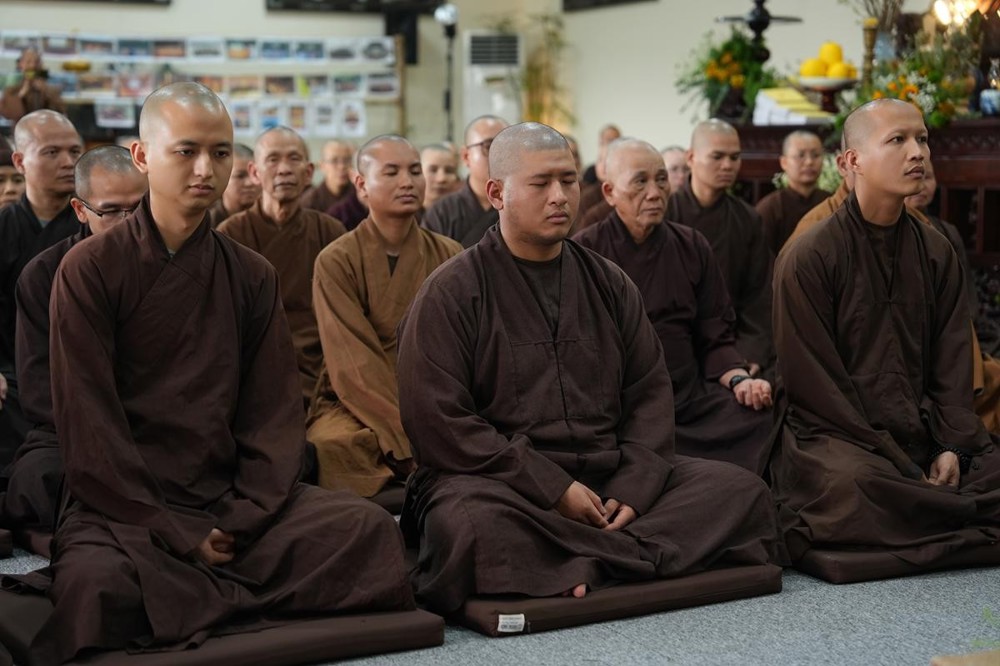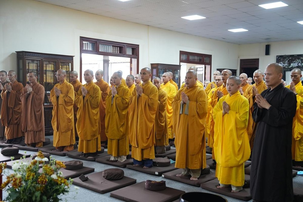 PSO - Ngày 26/3/2026 - Bước sang ngày tu học thứ ba của khóa tu xuất sĩ với chủ đề “Thắp sáng tình huynh đệ” tại chùa Vạn Phúc (xã Sóc Sơn, Hà Nội), hơn 200 hành giả là Tăng Ni giảng sinh lớp Đào tạo Cao cấp Giảng sư khu vực phía Bắc đã cùng nhau trải qua những giờ phút tu tập an tịnh, thấm đượm pháp vị giữa không gian thanh tịnh của chốn già lam.