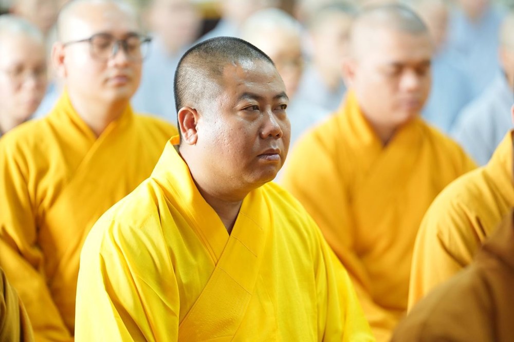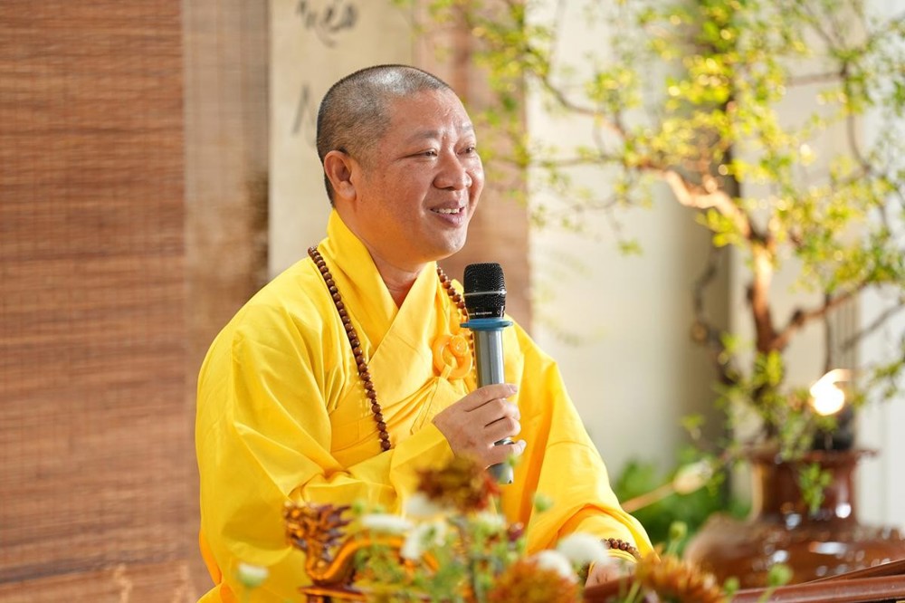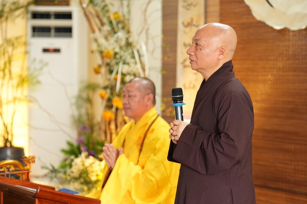 Trong buổi sáng, đại chúng trang nghiêm lắng nghe thời pháp thoại đầy tâm huyết từ Thượng tọa Thích Thiện Thuận - Ủy viên HĐTS, Ủy viên thường trực Ban Hoằng pháp TW, Phó trưởng BTS GHPGVN thành phố HCM với chủ đề “Tình người xuất gia”. Bằng giọng kể dung dị mà sâu lắng, Thượng tọa đã đưa đại chúng trở về những tháng năm gian khó thuở ban đầu trên bước đường tu học.
