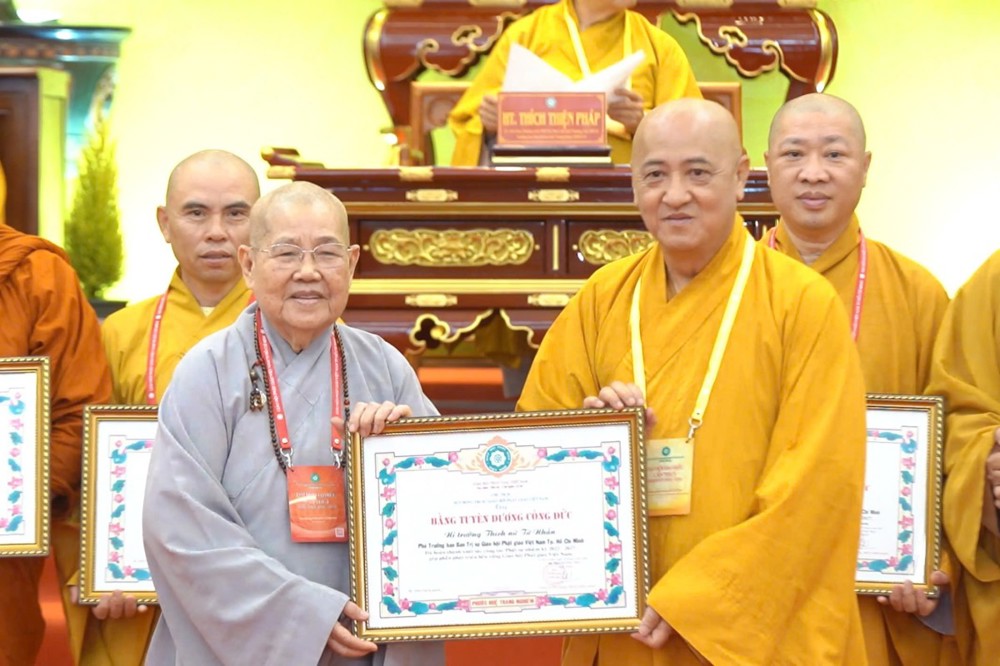 Trong khuôn khổ ngày làm việc thứ nhất, Ban Tổ chức đã công bố các quyết định khen thưởng nhằm ghi nhận đóng góp trong công tác Phật sự. Trung ương Giáo hội trao Bằng tuyên dương công đức cho Ban Trị sự và 87 Tăng Ni; Ban Trị sự Phật giáo TP.HCM trao Bằng công đức cho 139 Tăng Ni, Phật tử. Dịp này, UBND TP.HCM và Ủy ban MTTQ Việt Nam TP.HCM cũng trao Bằng khen cho các tập thể, cá nhân có thành tích tiêu biểu trong hoạt động Phật sự và an sinh xã hội nhiệm kỳ qua.