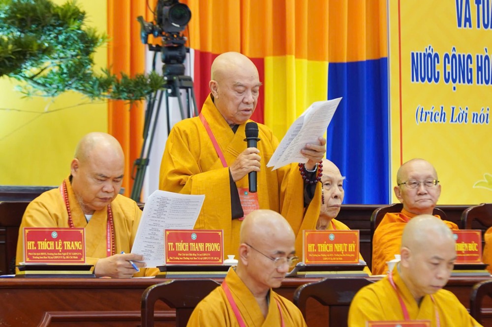 Phát biểu khai mạc, Hòa thượng Thích Lệ Trang nhấn mạnh, Đại hội là dịp tổng kết thành quả Phật sự nhiệm kỳ qua, nhìn nhận những tồn tại, rút ra bài học kinh nghiệm, đồng thời đề ra phương hướng hoạt động cho nhiệm kỳ mới với tinh thần đổi mới, thích ứng xu thế phát triển khoa học – công nghệ và hội nhập của đất nước.